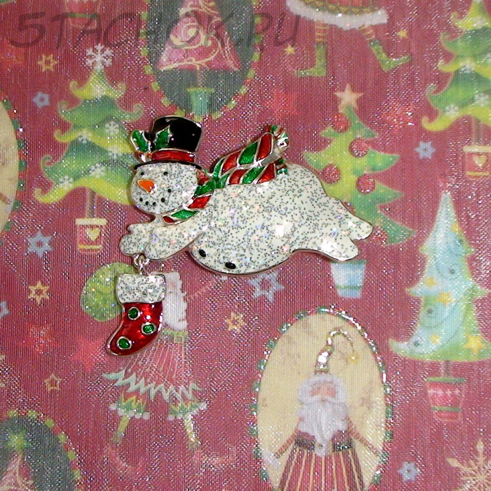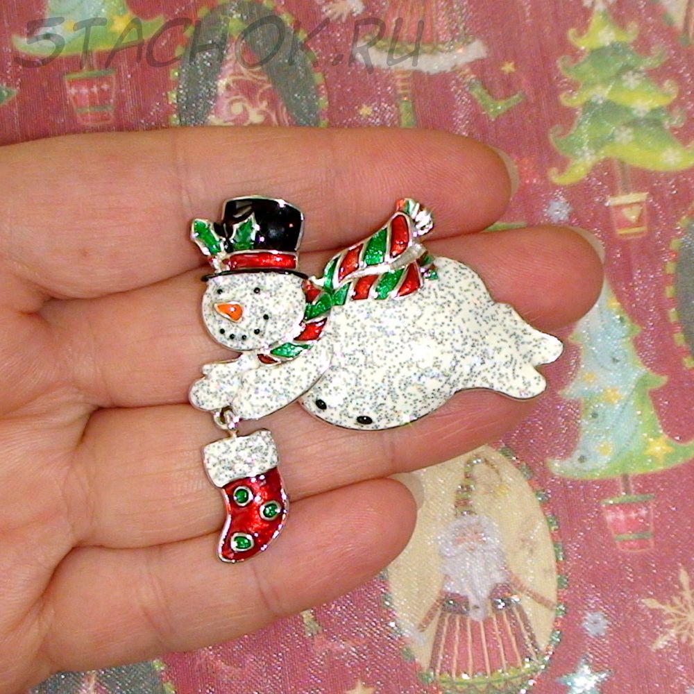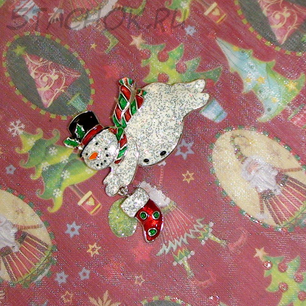 Брошь "Снеговичок" под серебро/эмаль/блестки