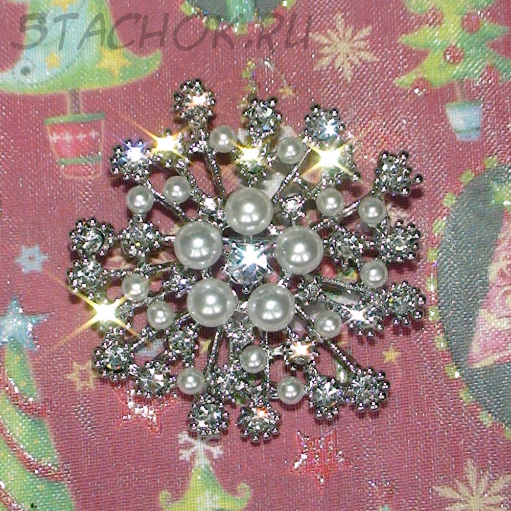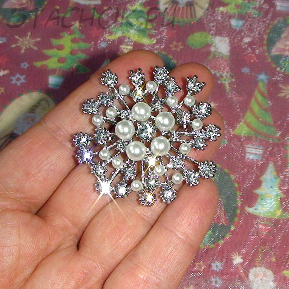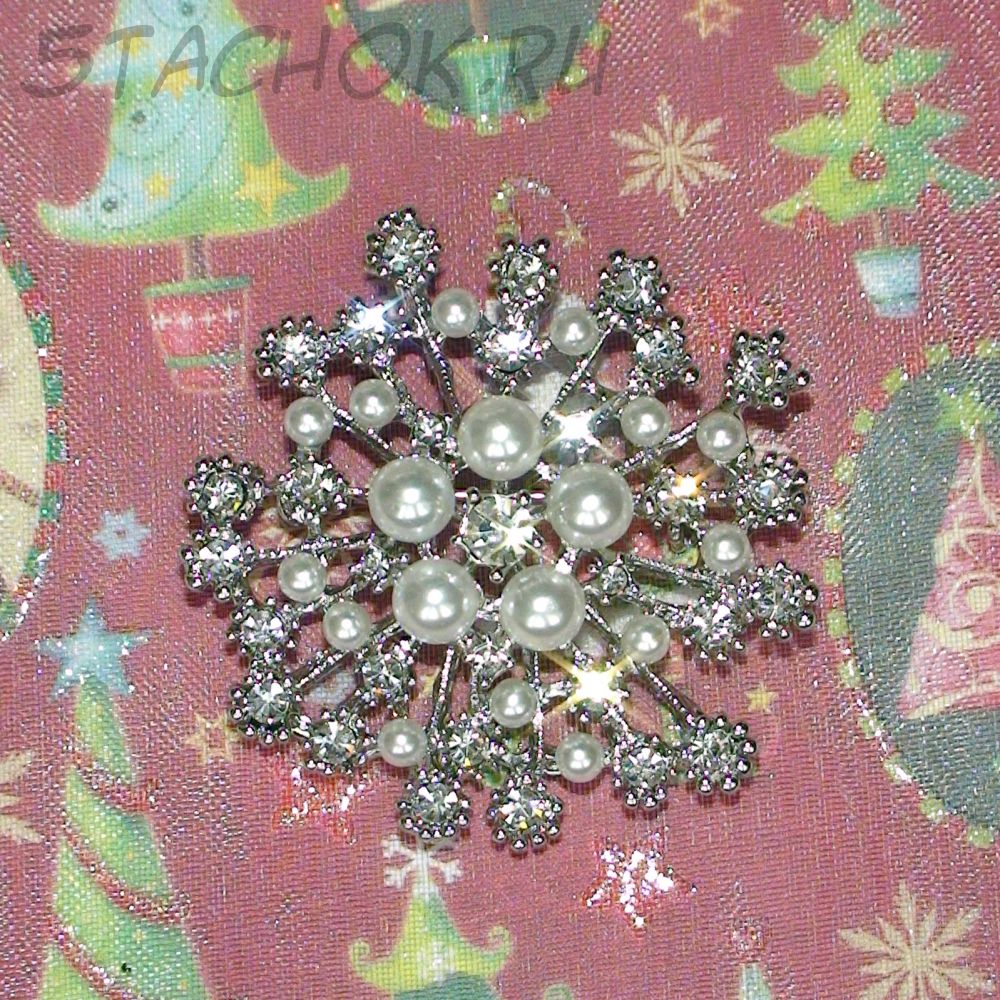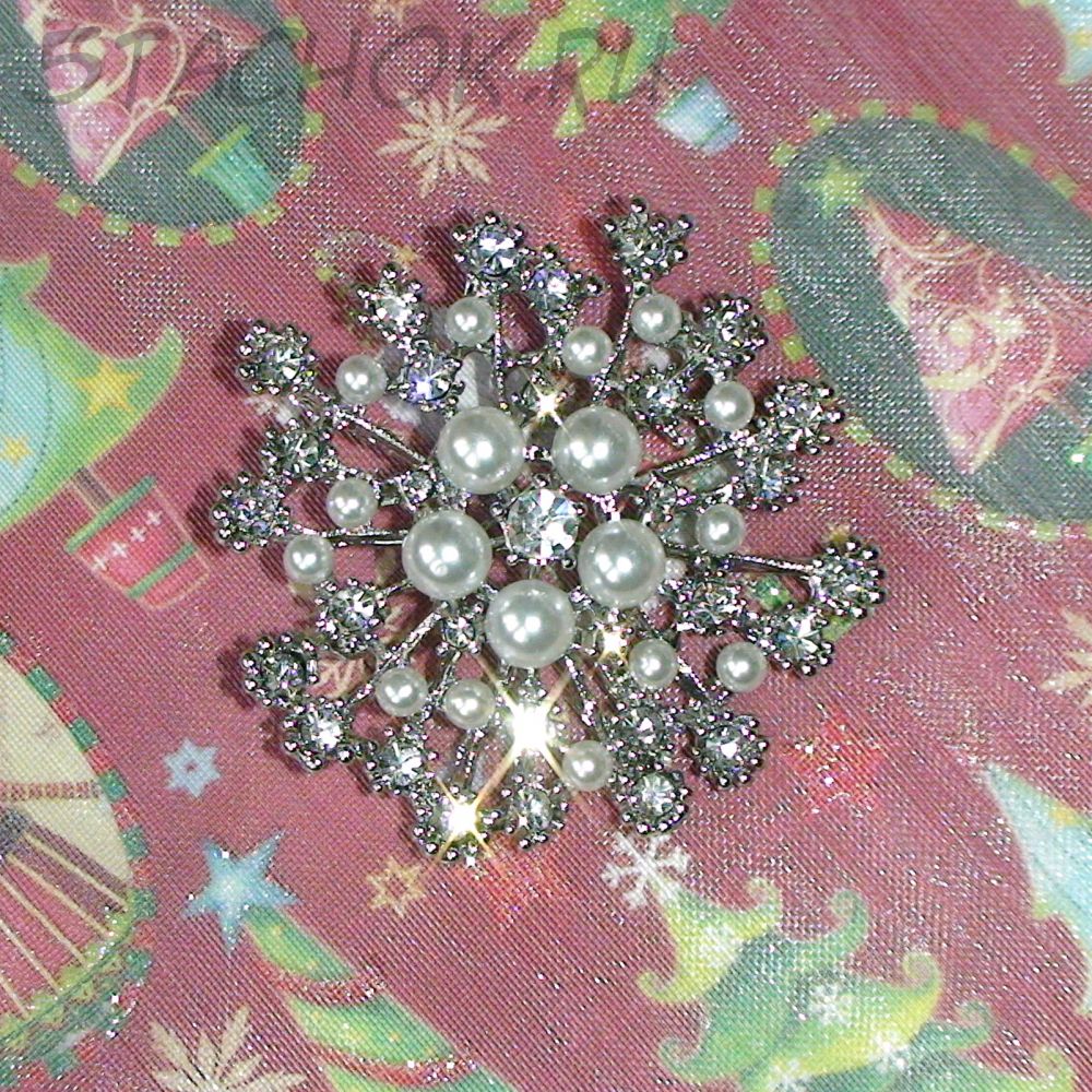 Брошь "Снежинка" под серебро, стразы, иск.жемчуг (США)