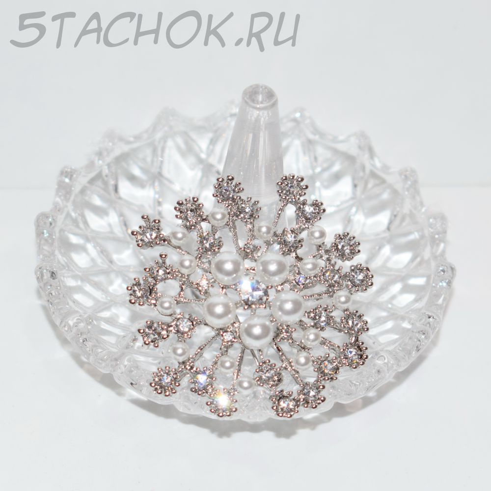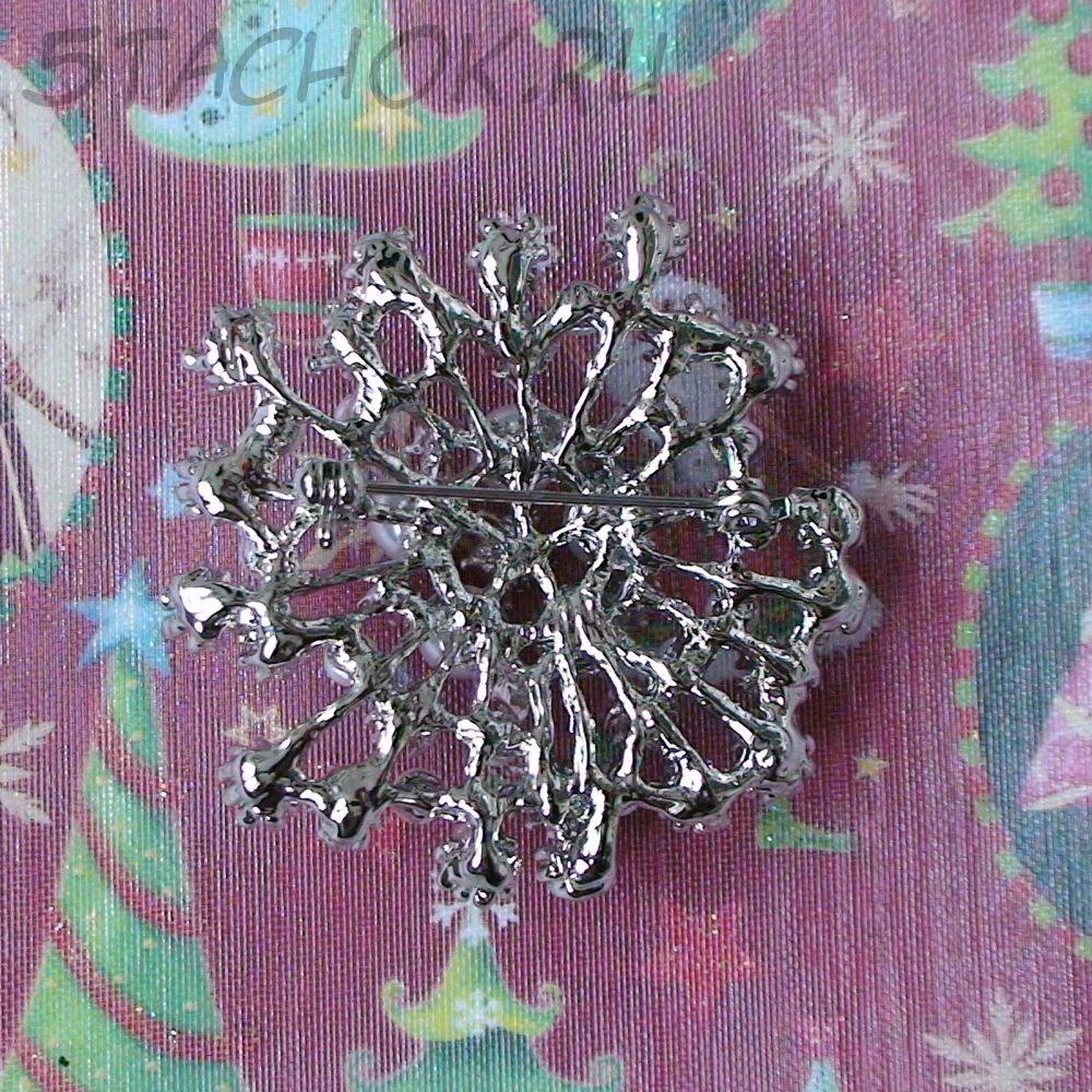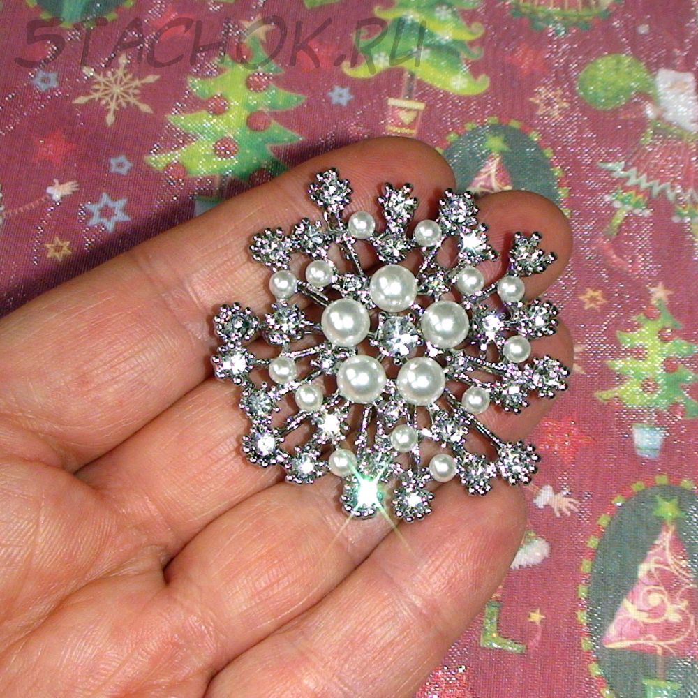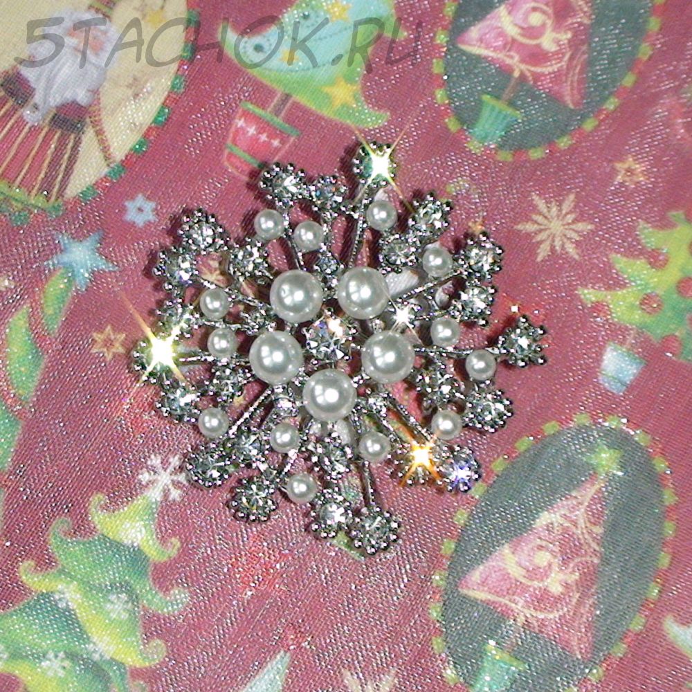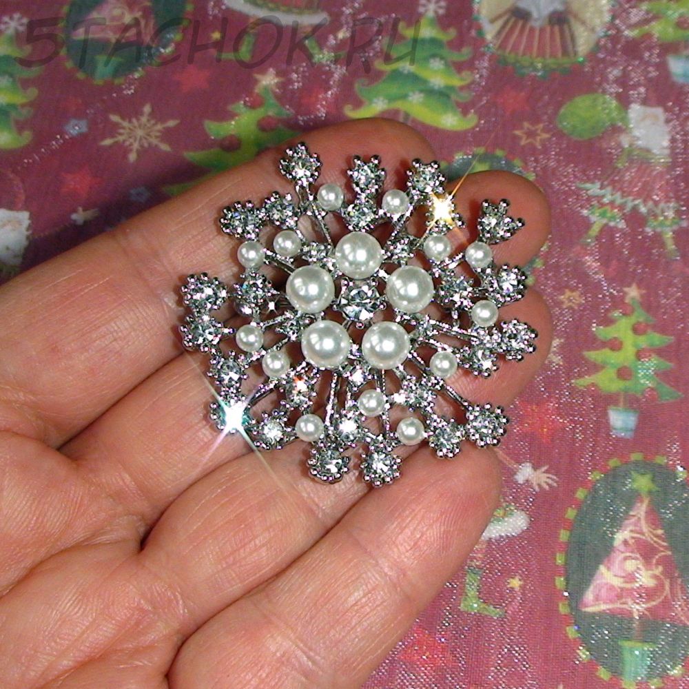 Брошь "Снежинка" под серебро, стразы, иск.жемчуг (США)