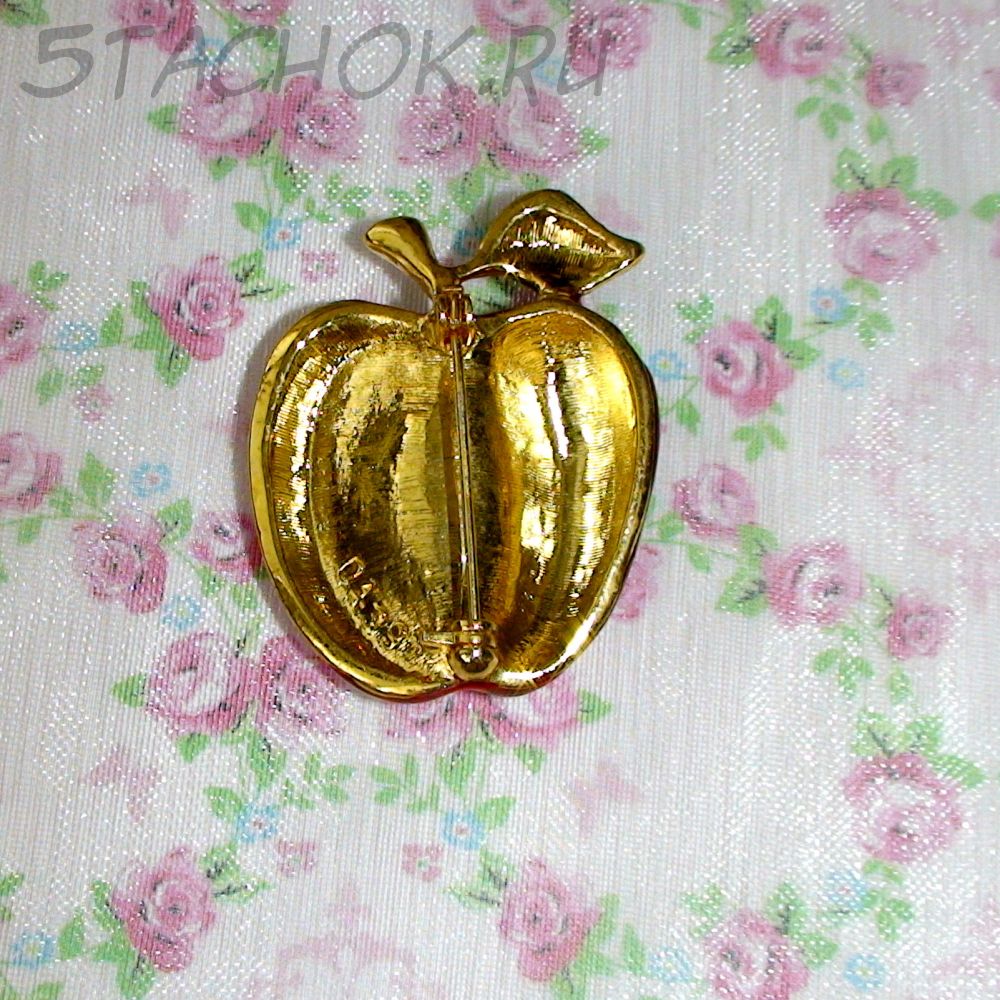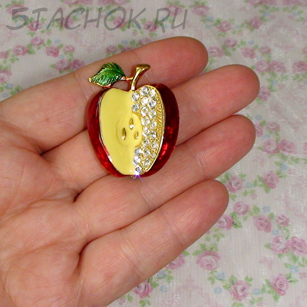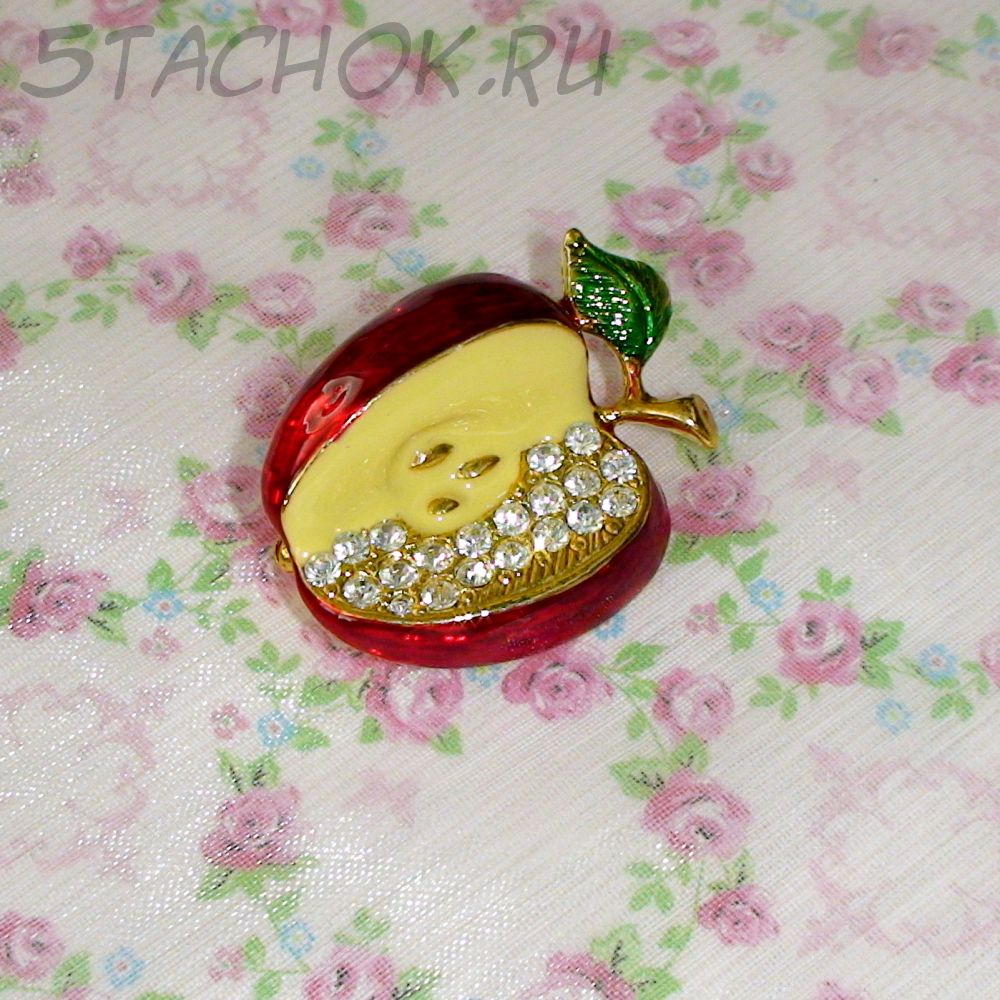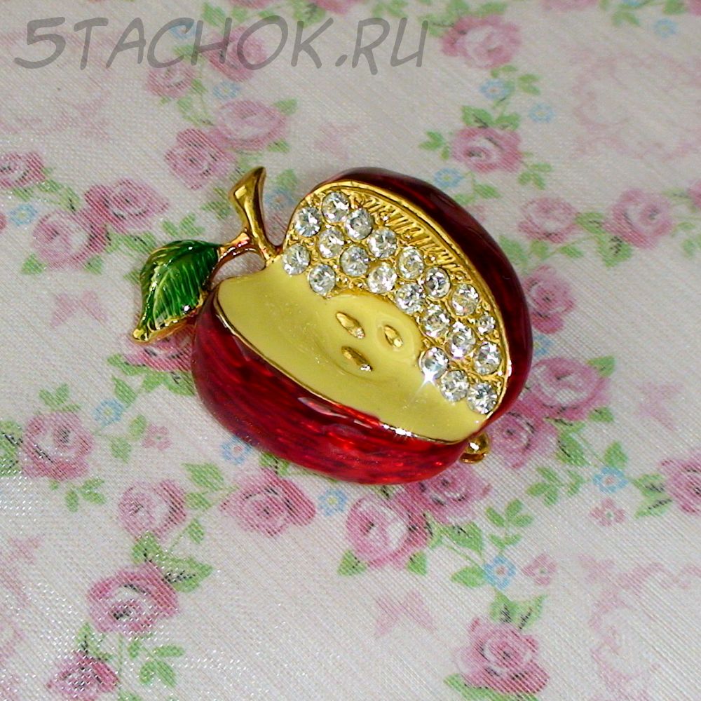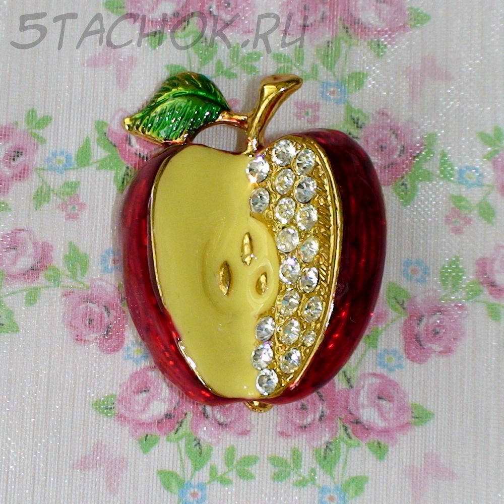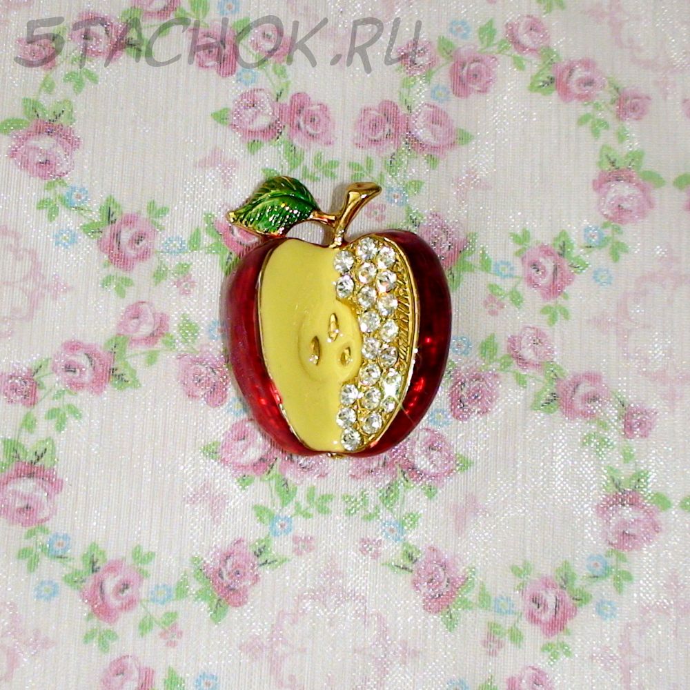 Брошь "Сочное яблочко" под золото/эмаль/стразы
