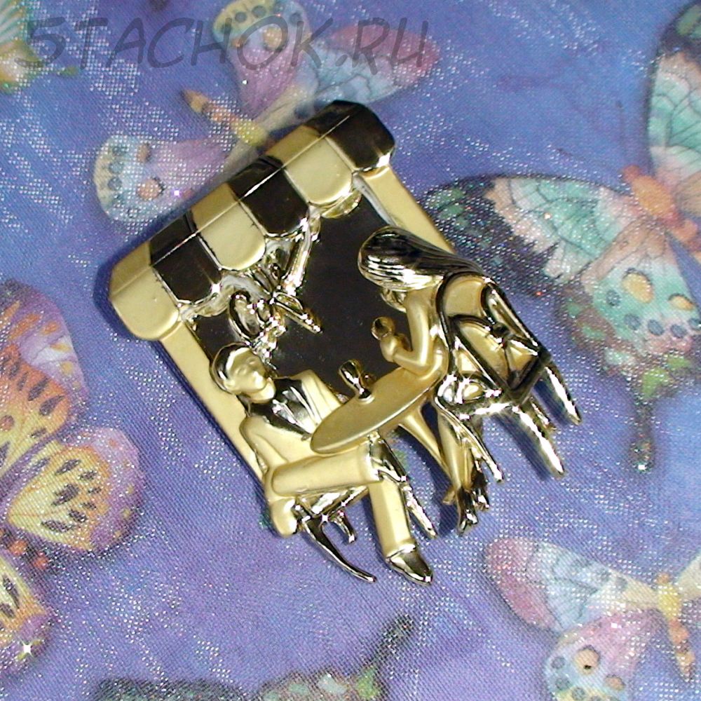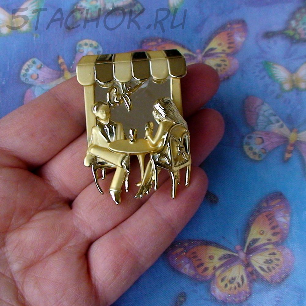 Брошь "Свидание в кафе" под золото, зеркало