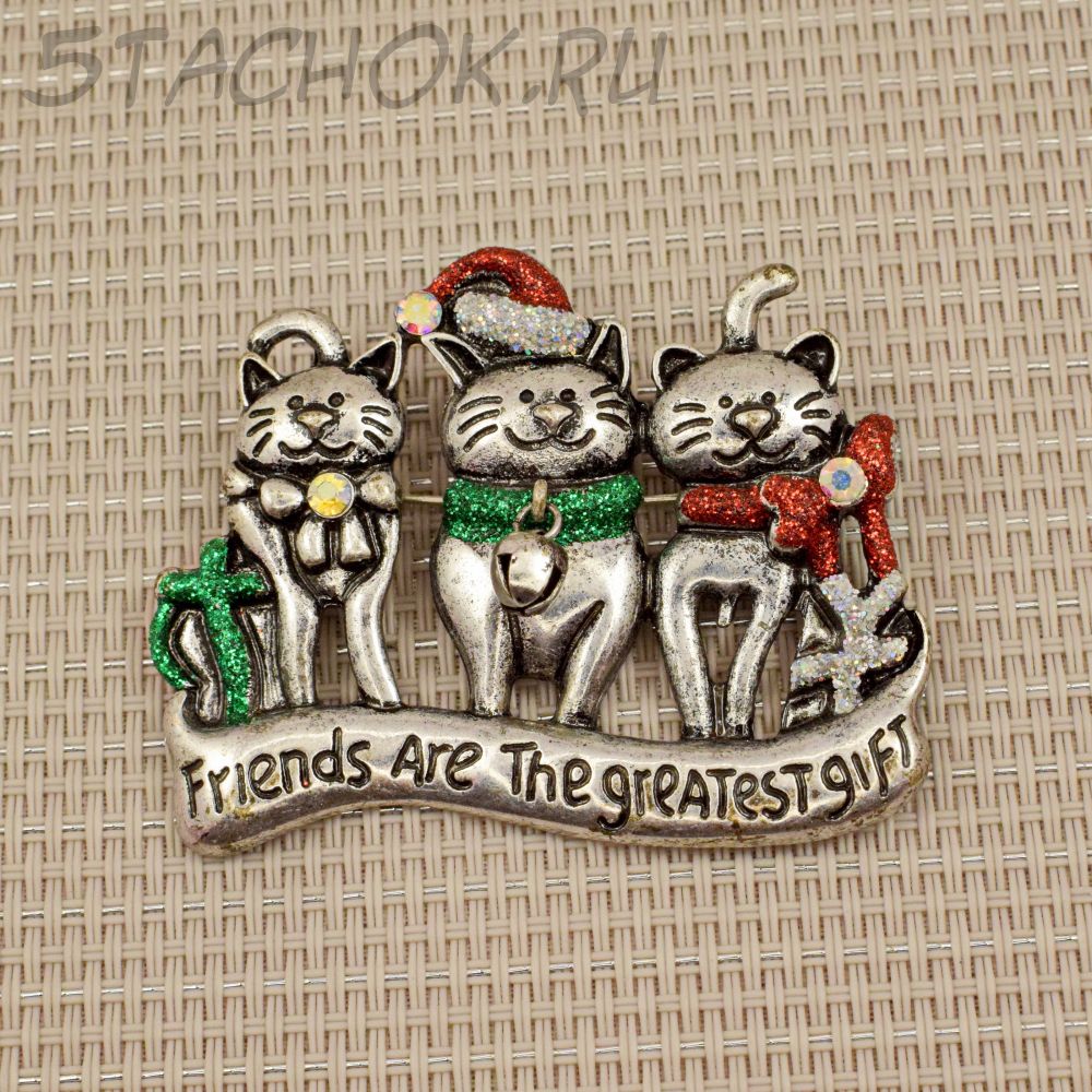 Брошь "Три кота-друга на Новый Год" (США)