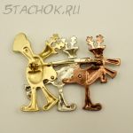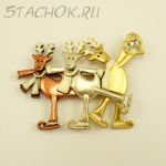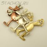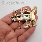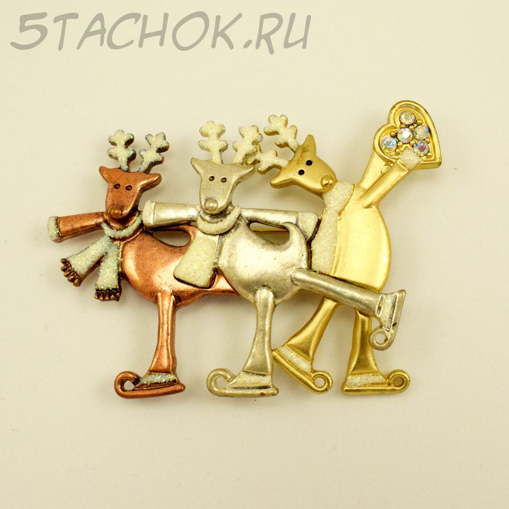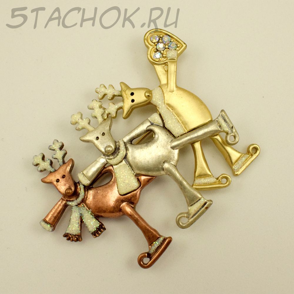 Брошь "Три новогодних оленя на катке" (США)