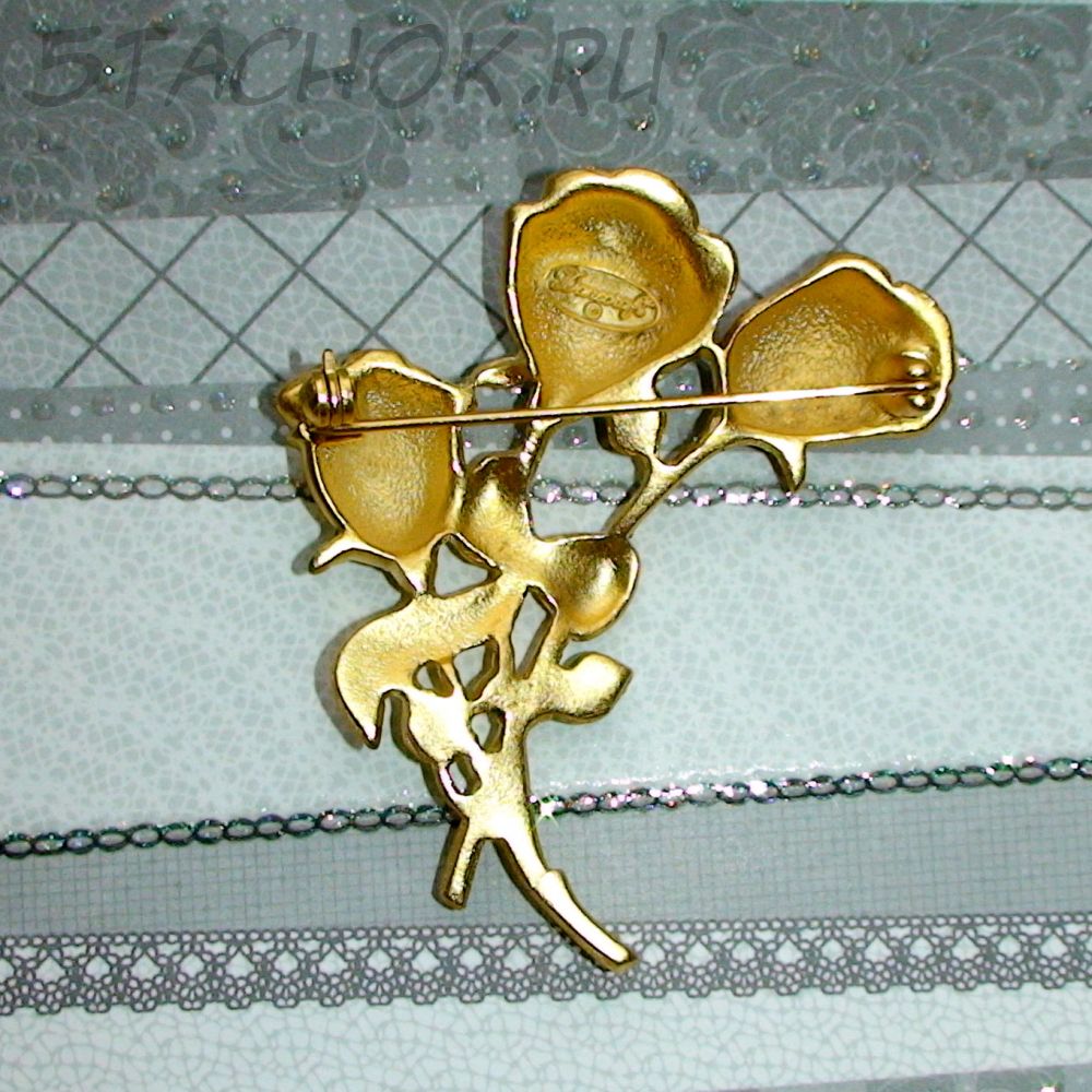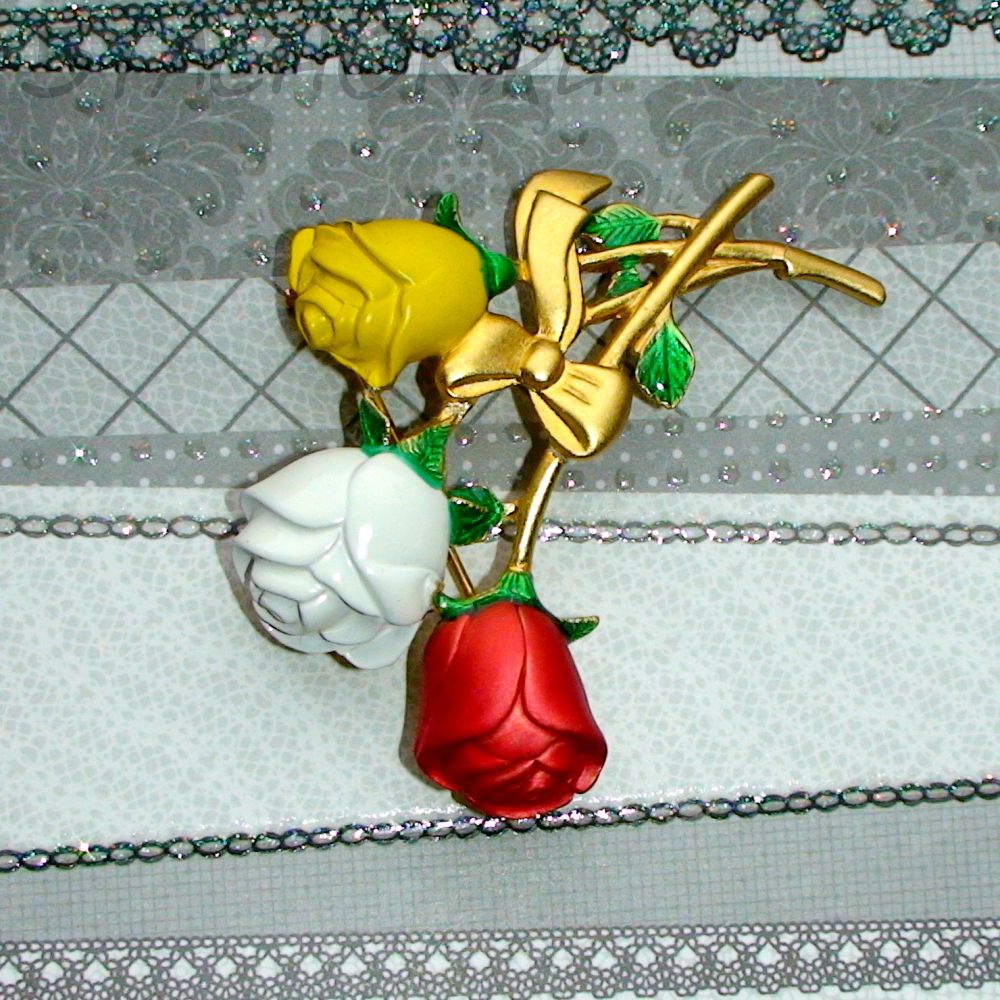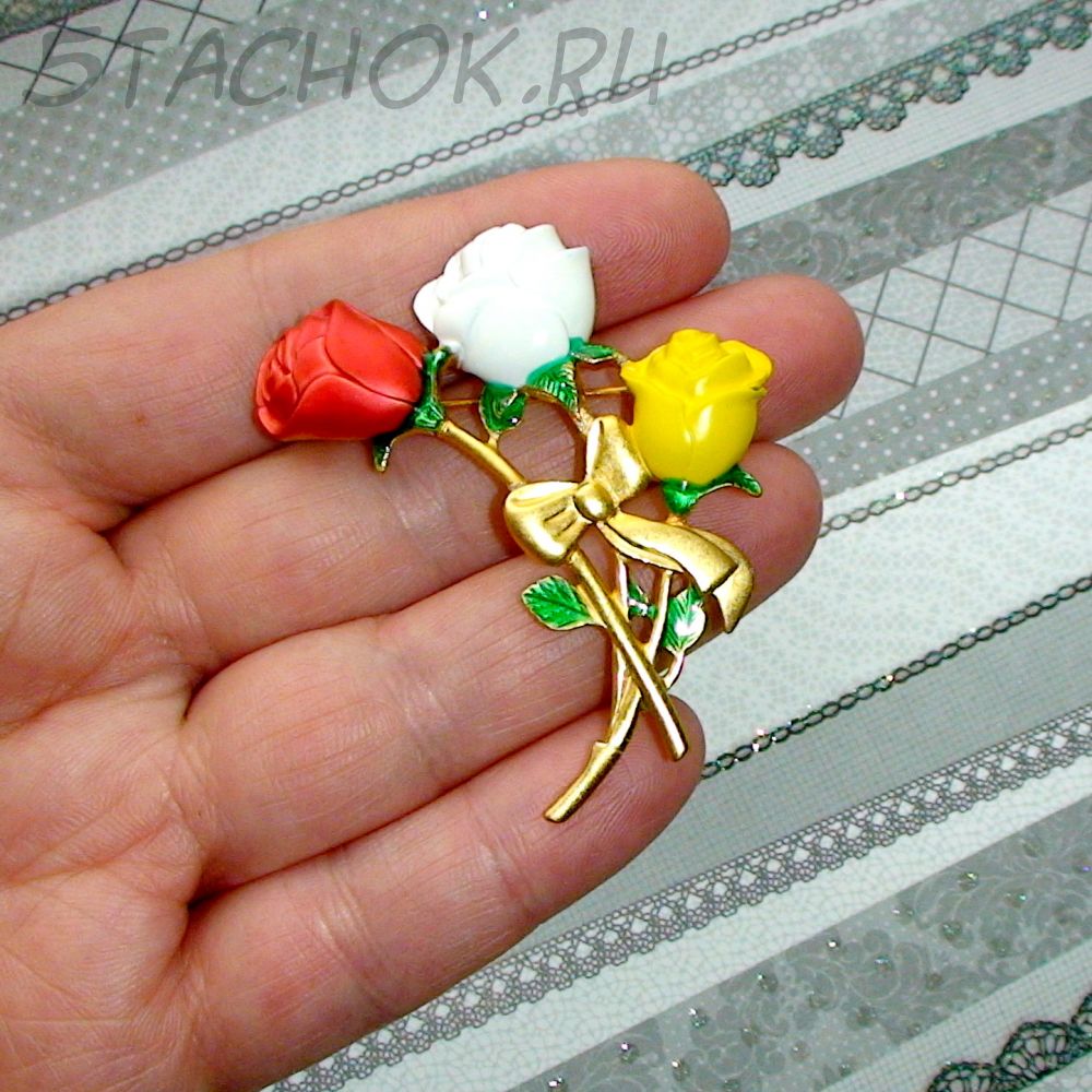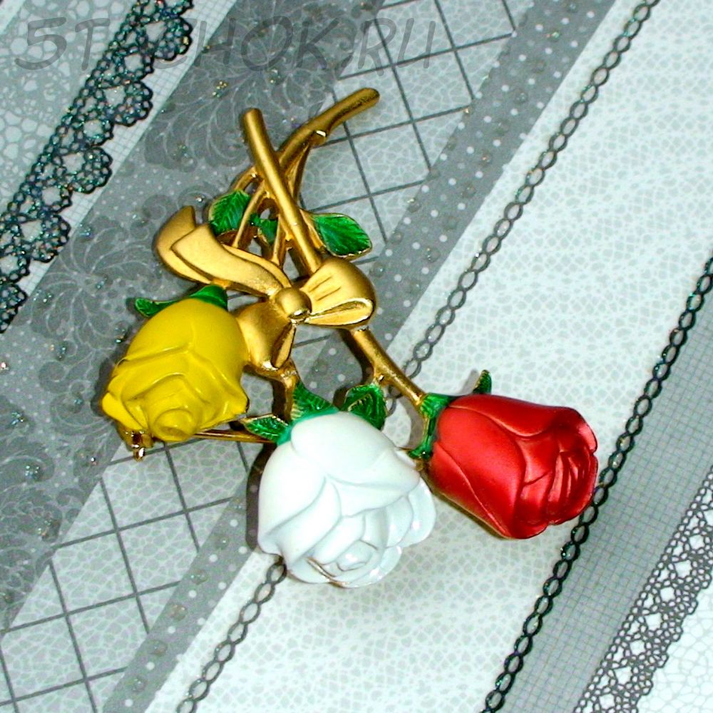 Брошь "Три розочки для любимой..." под золото, эмаль