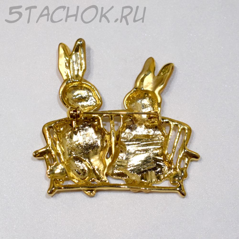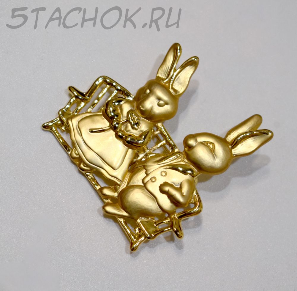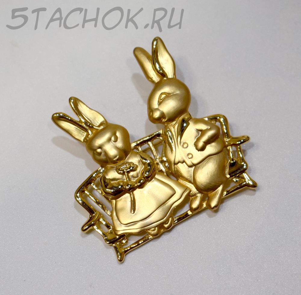 Брошь "Влюбленные Кролики" цвет золота (США)
