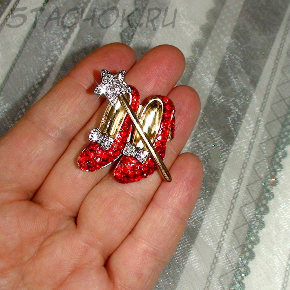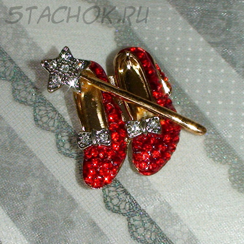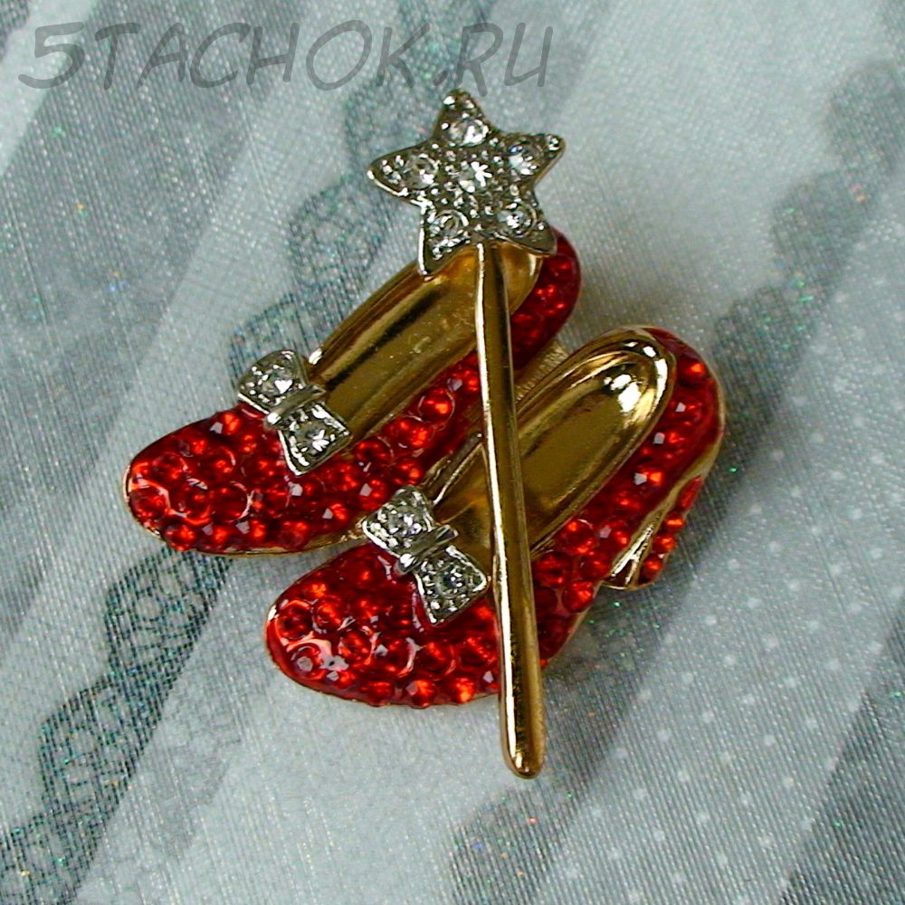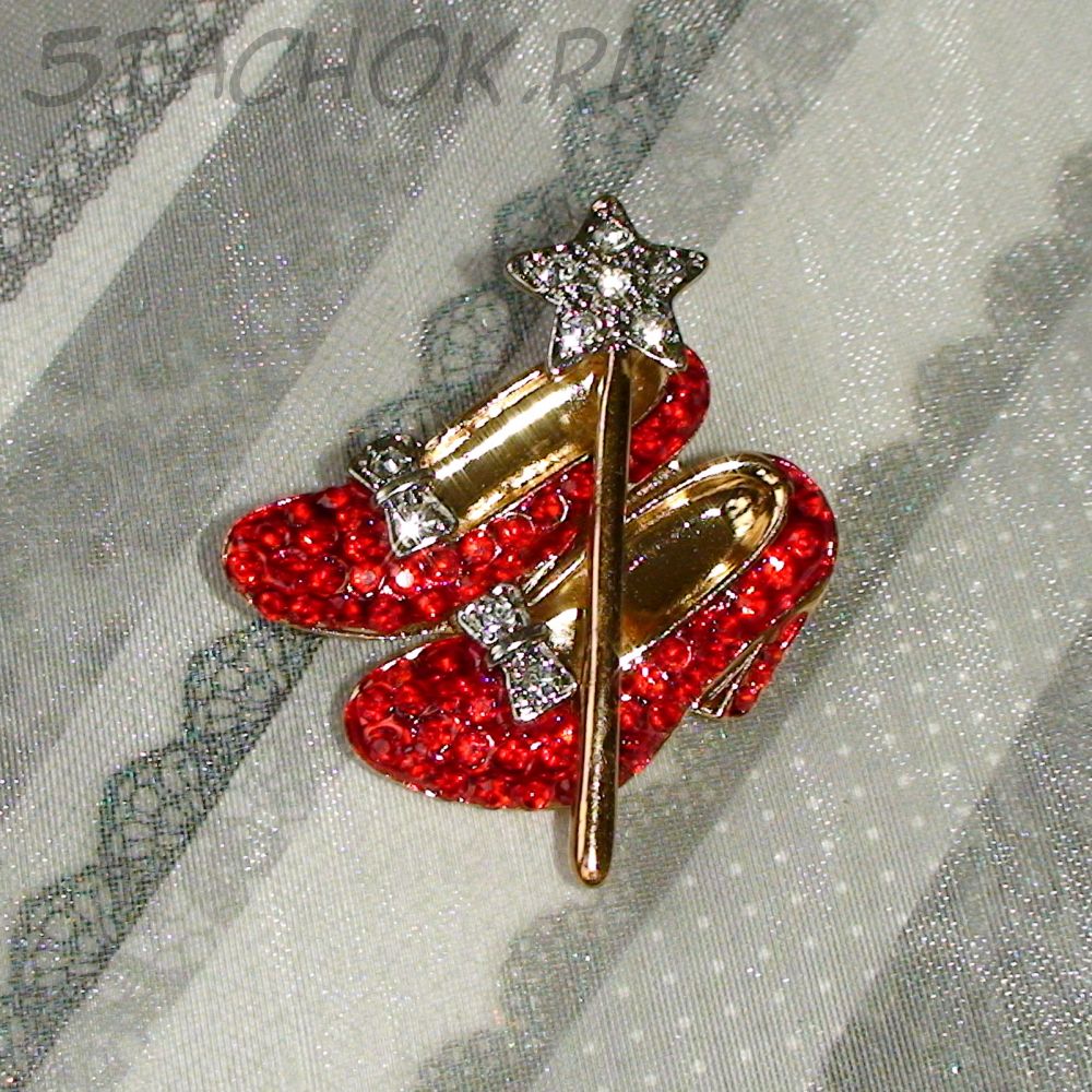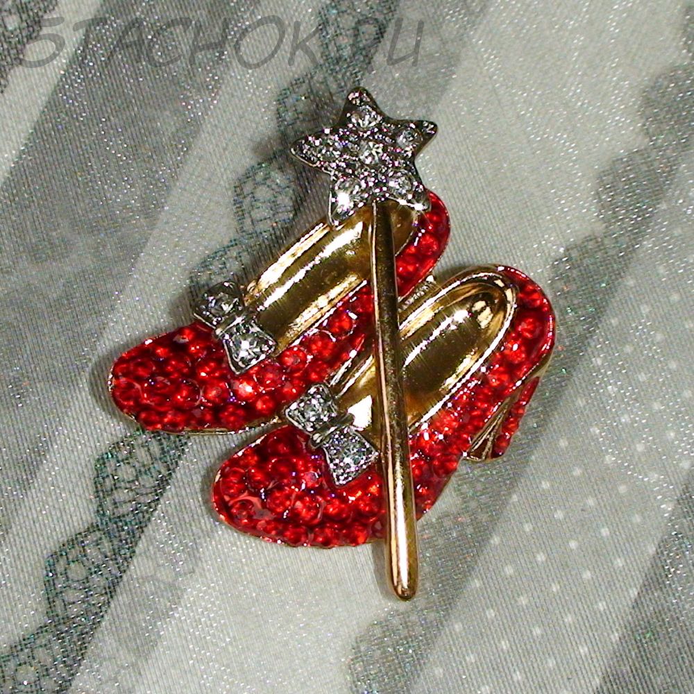 Брошь "Рубиновые туфельки Дороти" под золото, сваровски