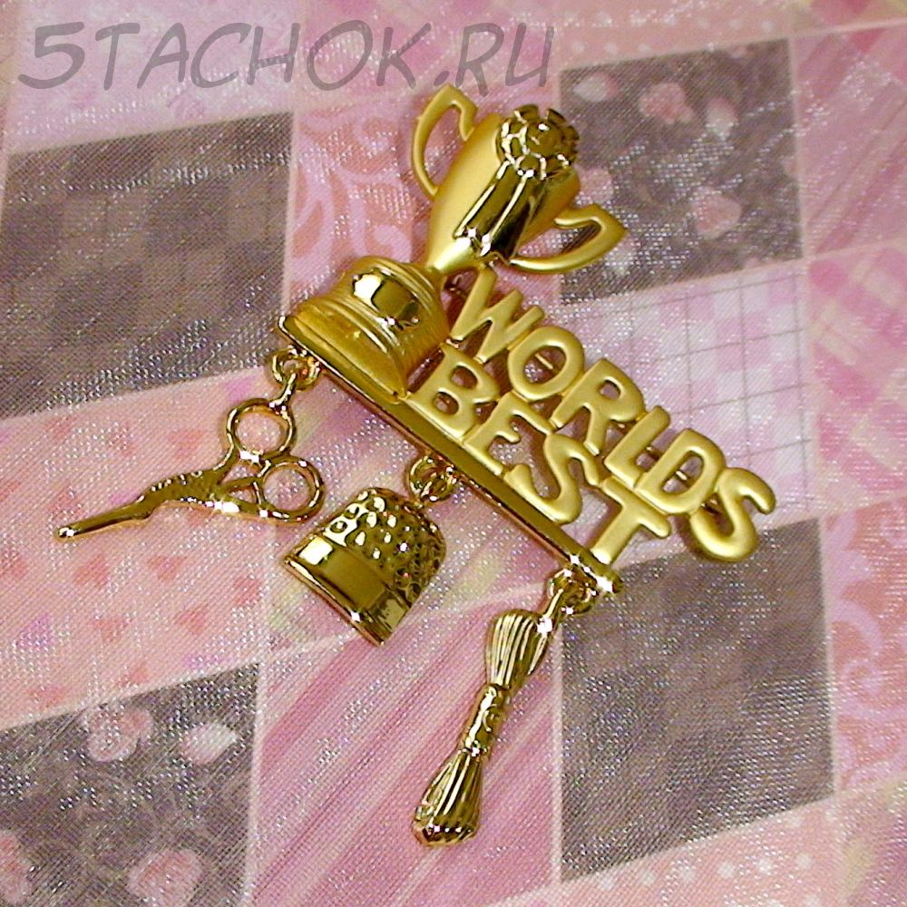 Рядом с красивым наградным кубком расположены: тонометр, рентген-снимок, фонендоскоп. Брошь выполнена под матовое и блестящее золото. В безупречном состоянии, ранее не использовалась.