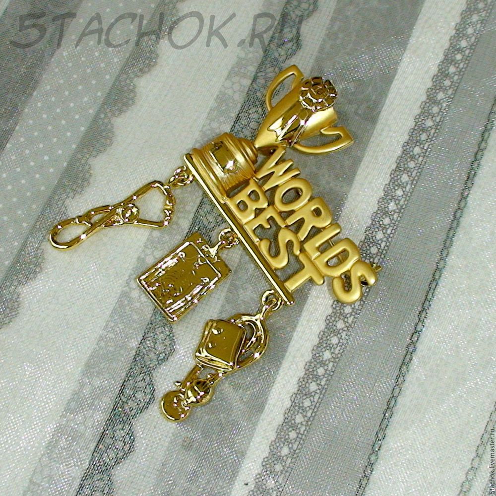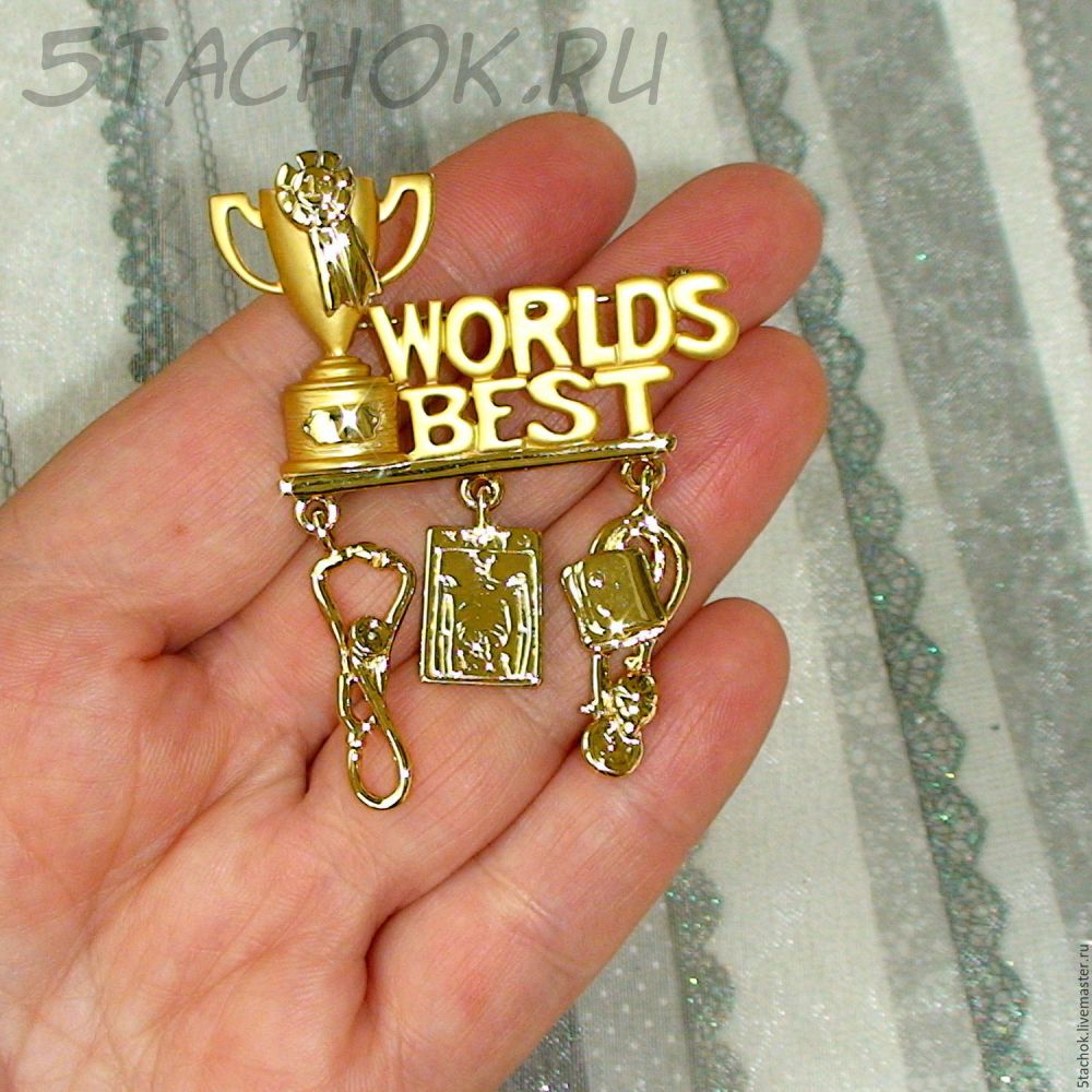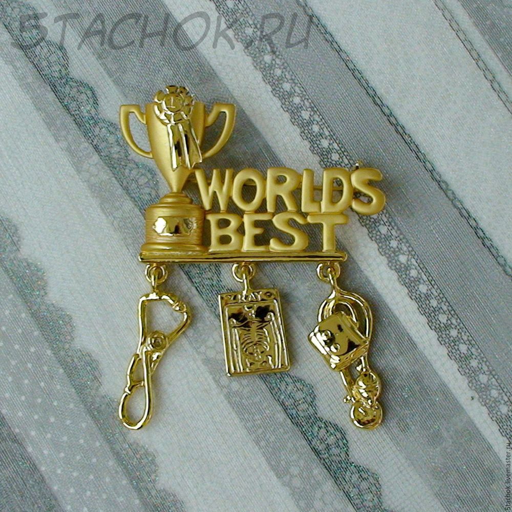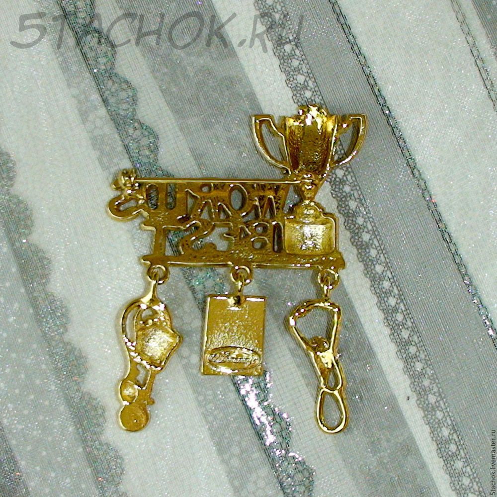 Рядом с красивым наградным кубком расположены: тонометр, рентген-снимок, фонендоскоп. Брошь выполнена под матовое и блестящее золото. В безупречном состоянии, ранее не использовалась.