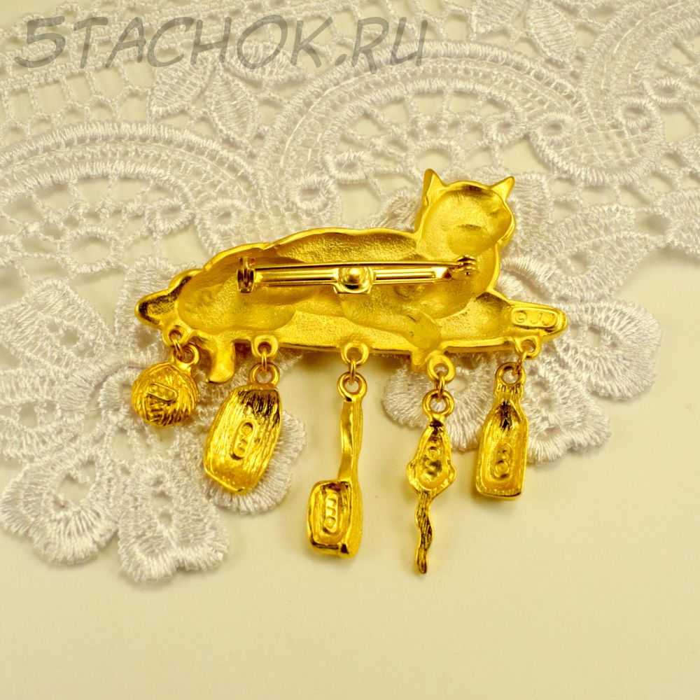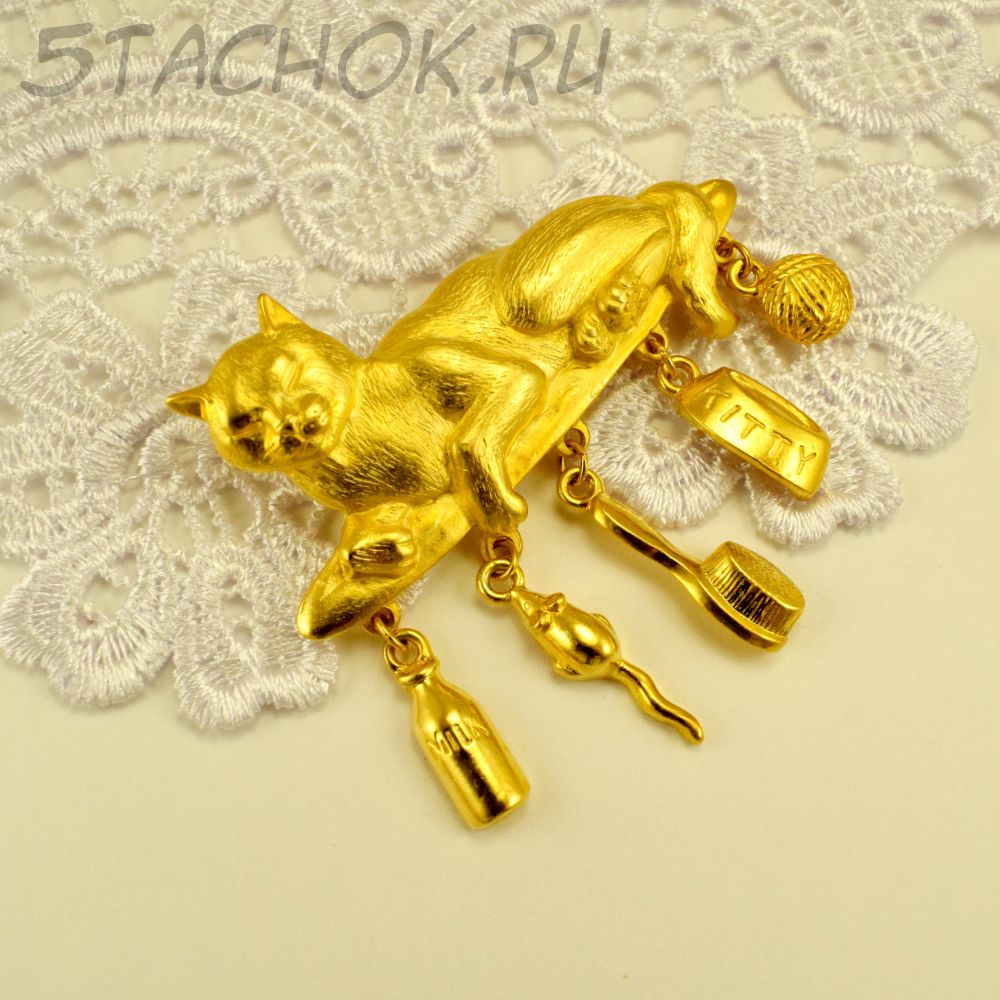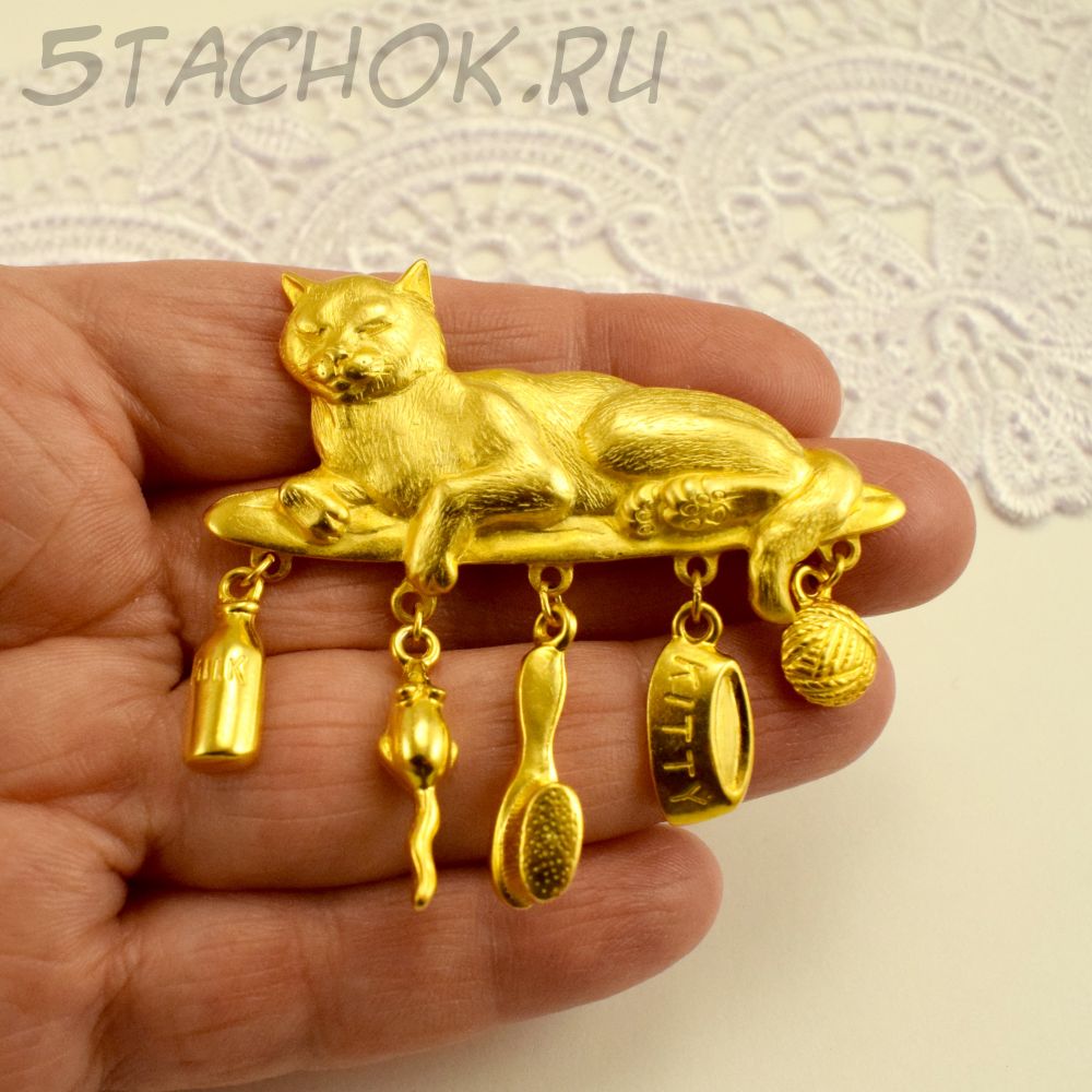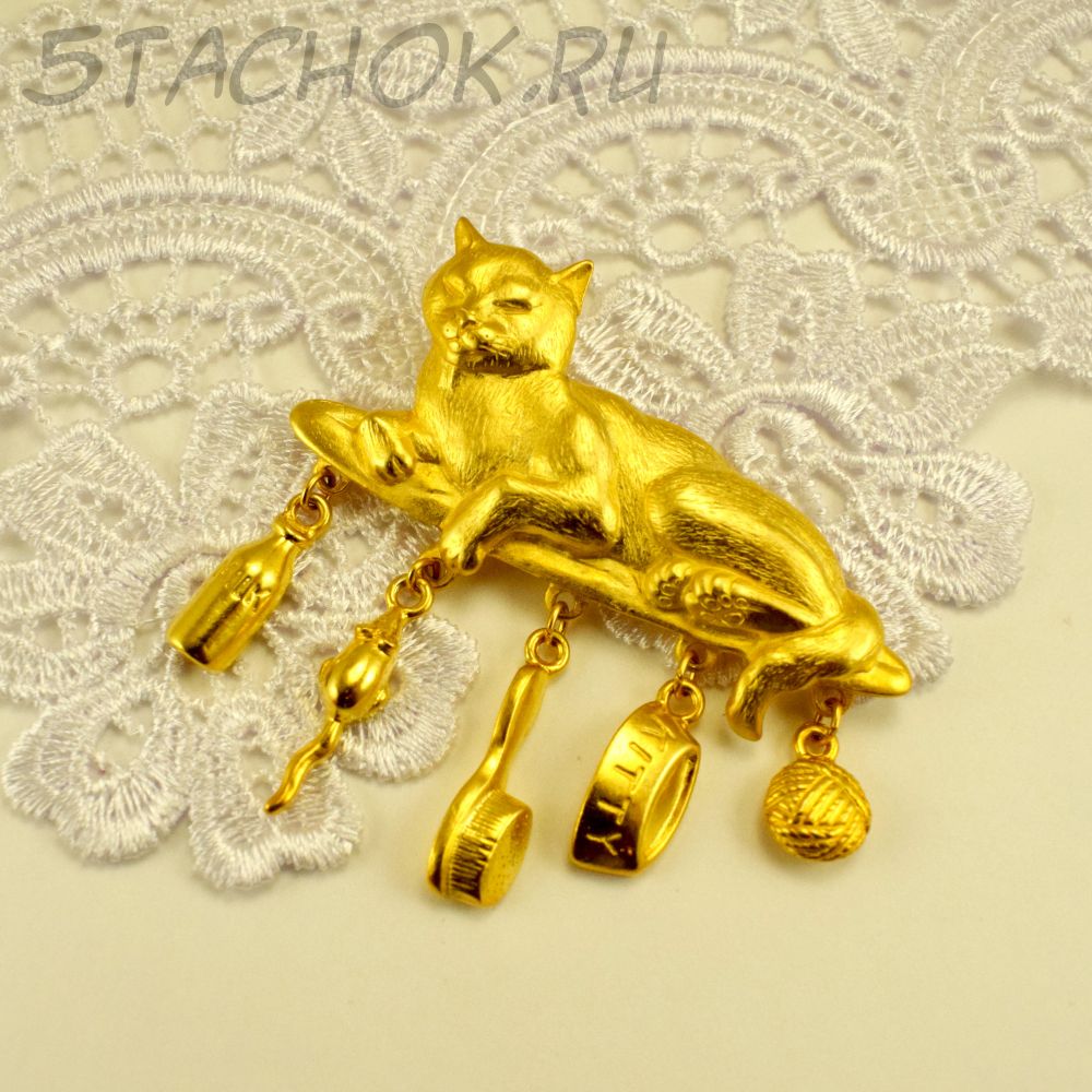 Брошь "Запасливый котик" цвет золота (JJ США)