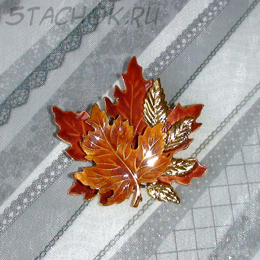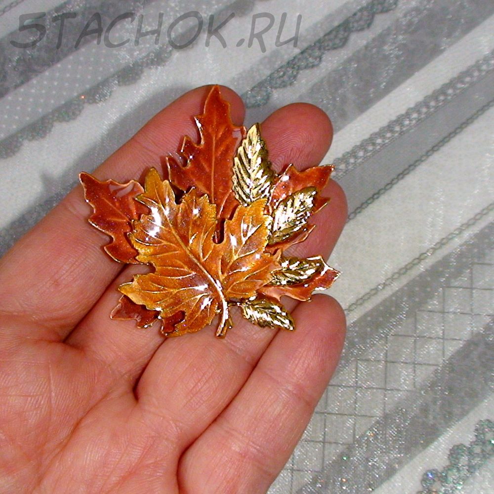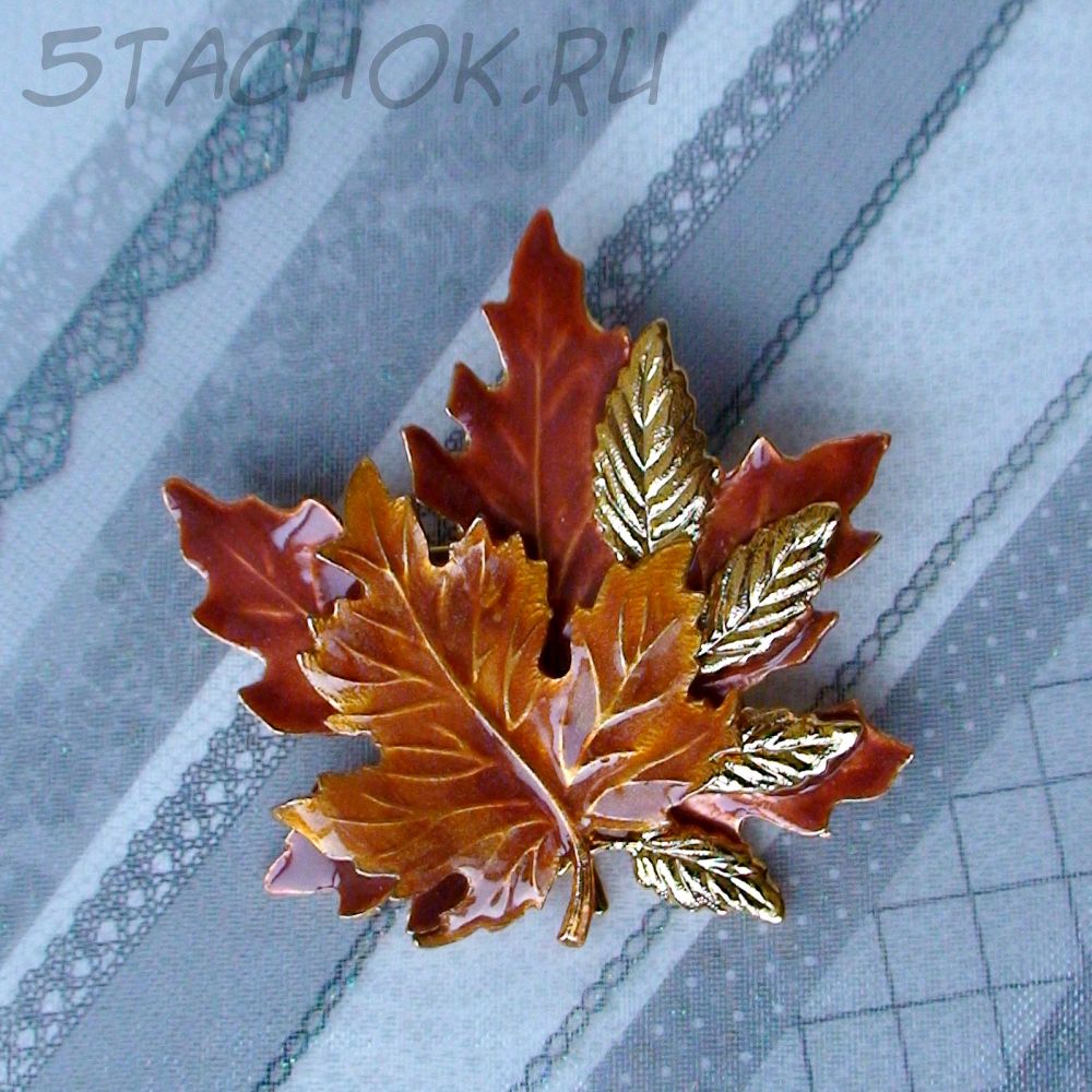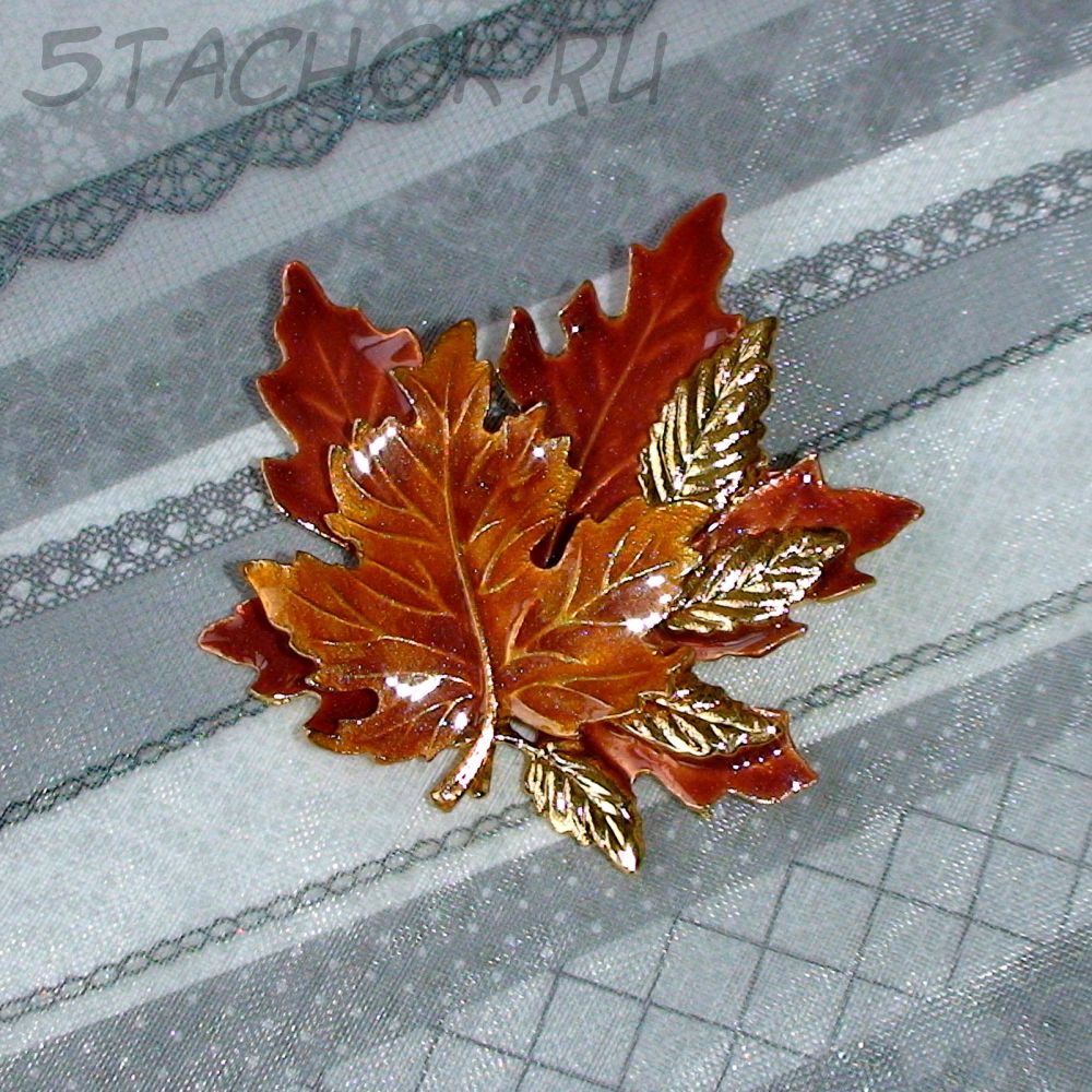 Брошь "Золотая листва" под золото/эмаль