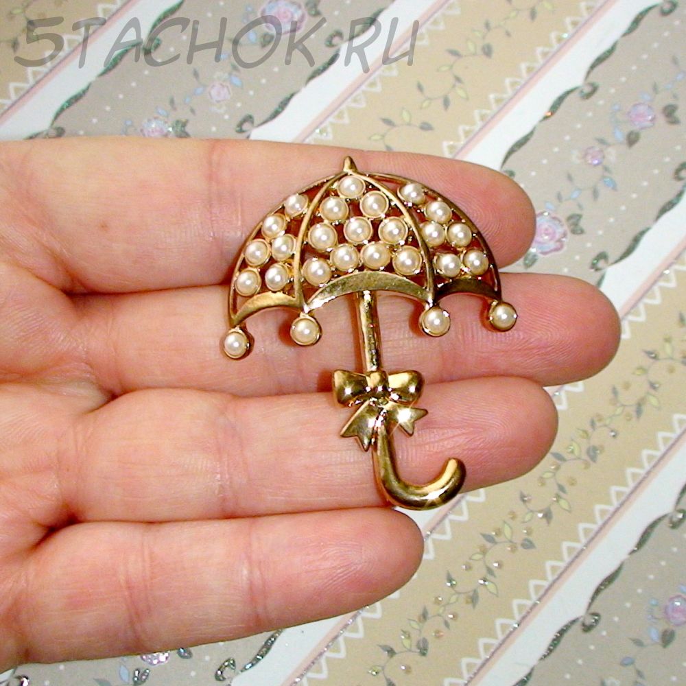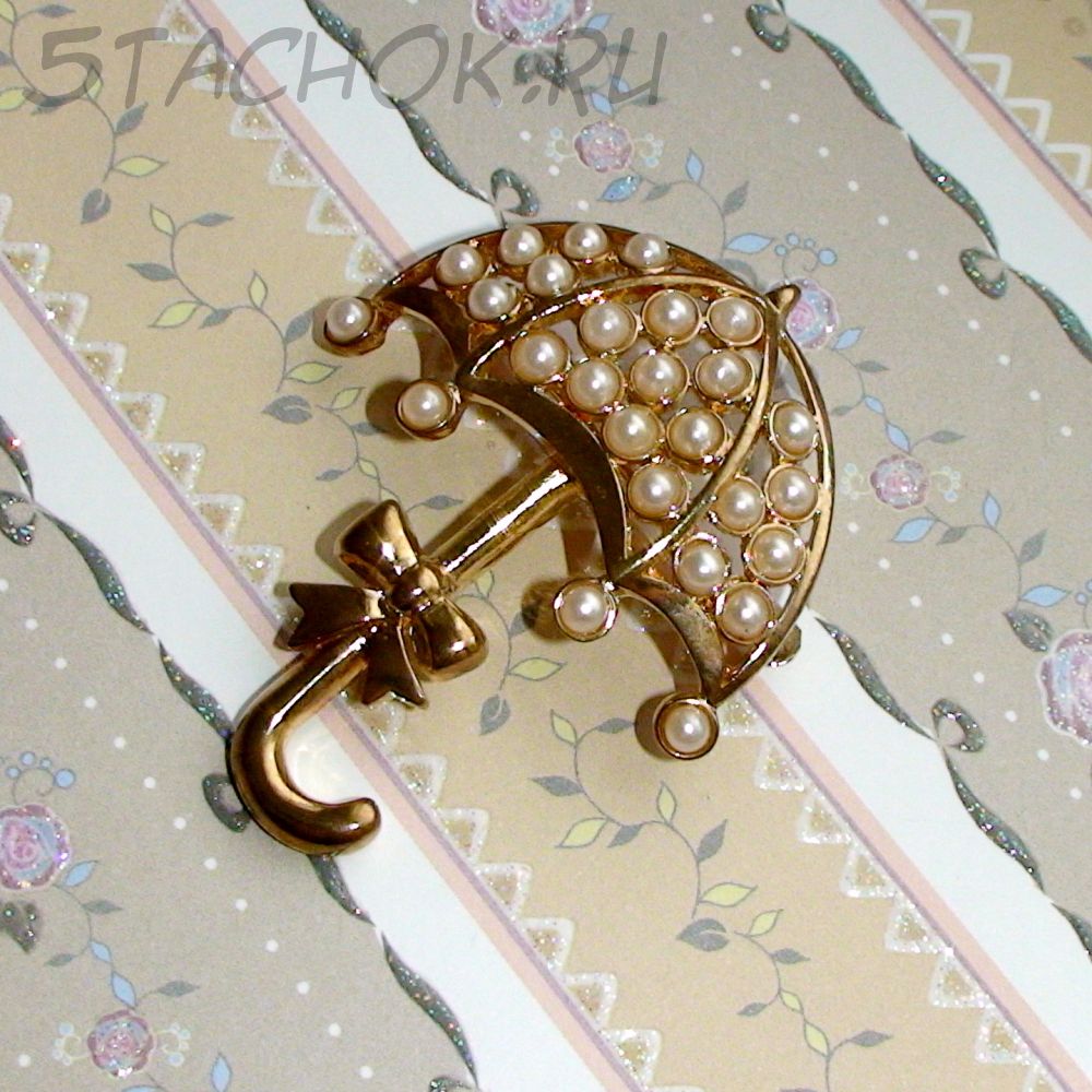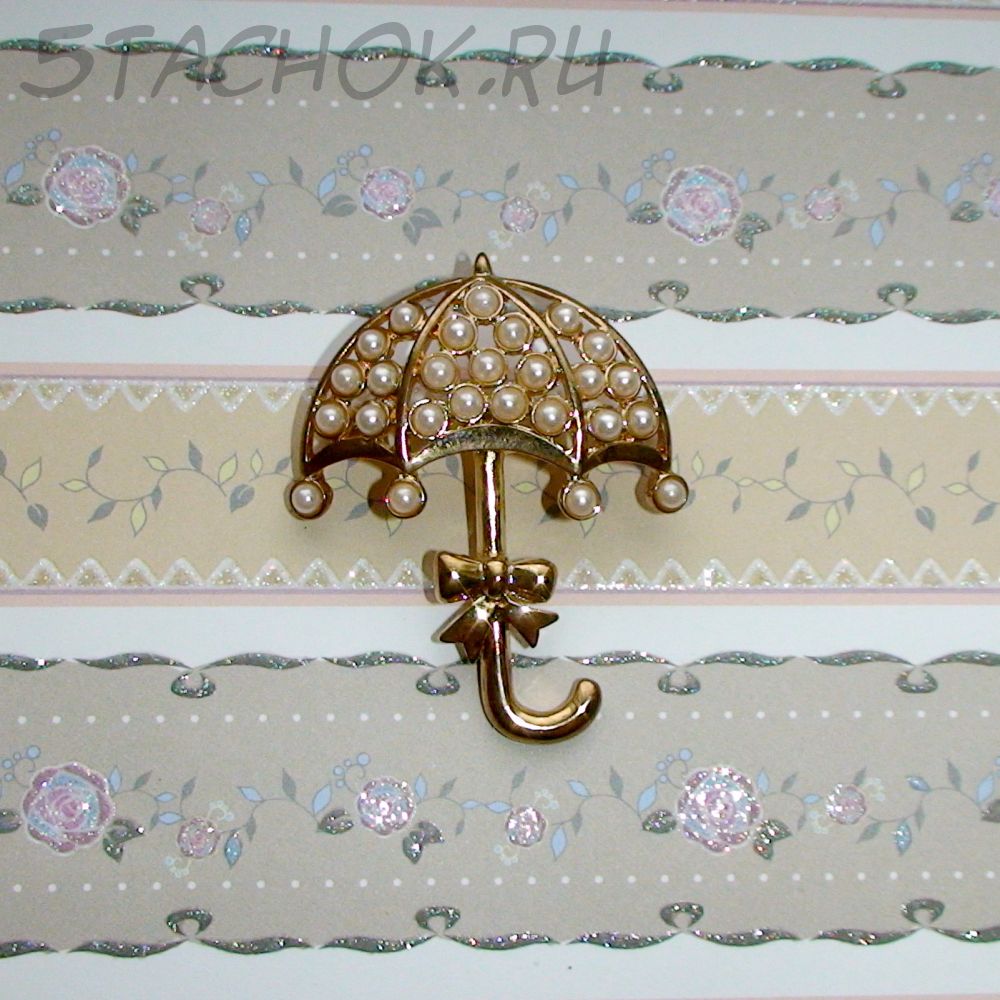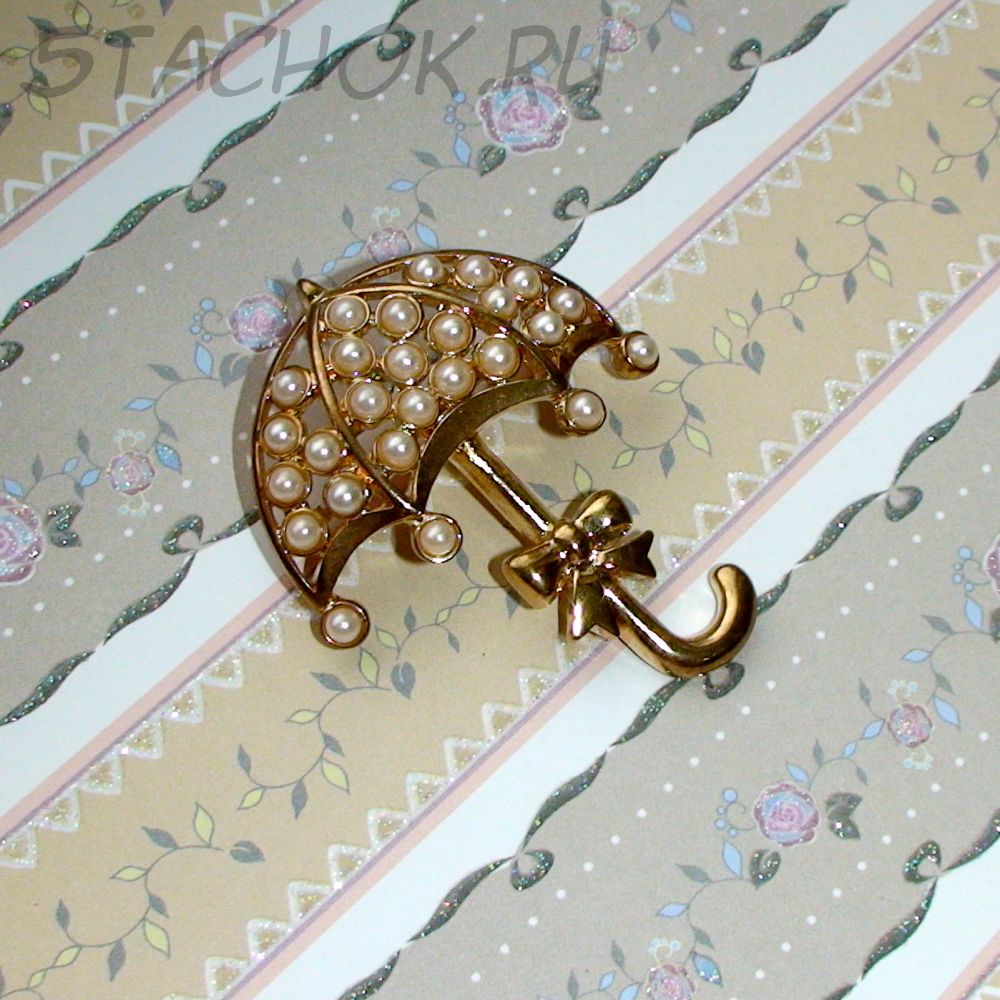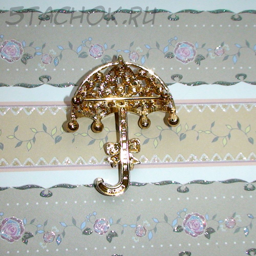 Брошь "Зонтик под дождиком" под золото/камушки (США)