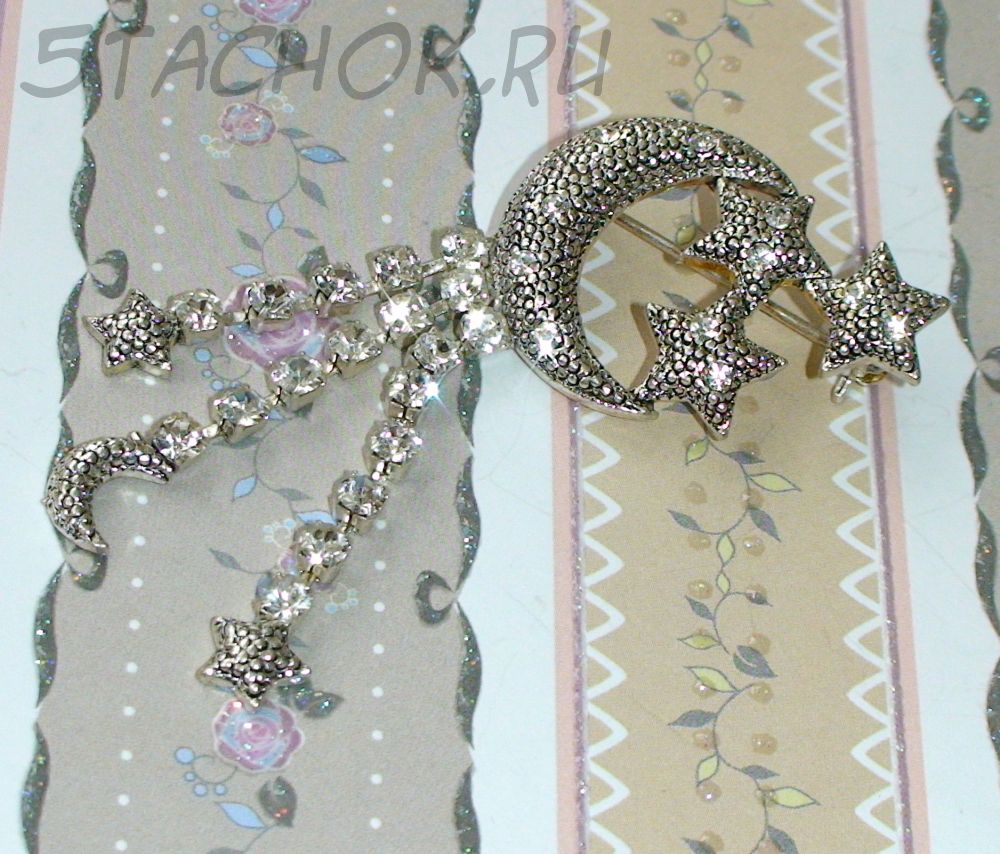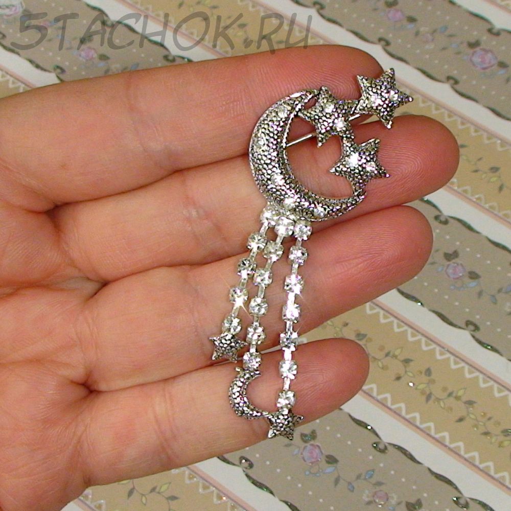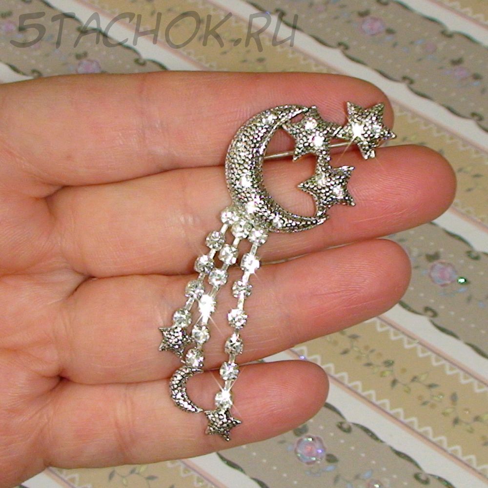 Брошь "Звездопад" под черненое серебро/чешское стекло