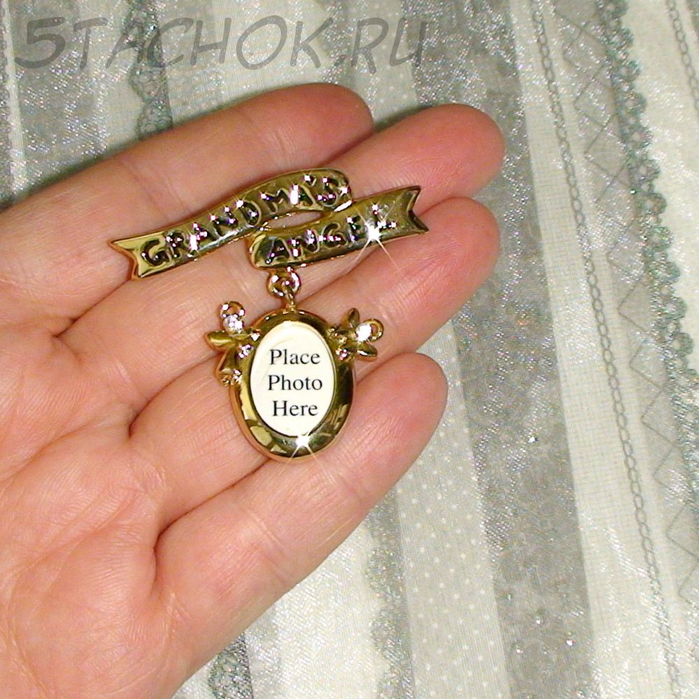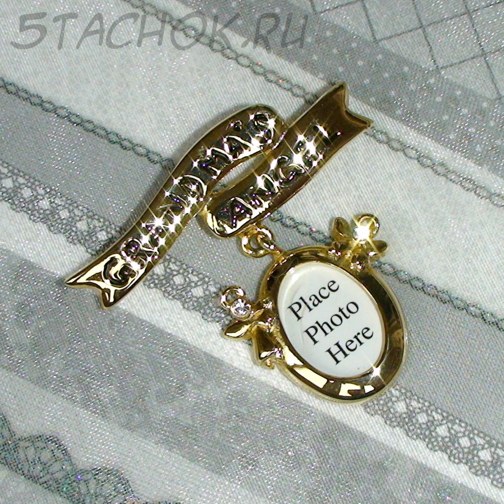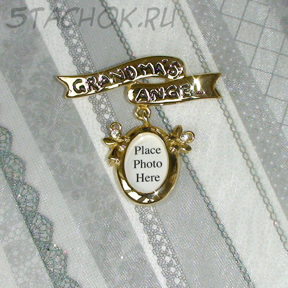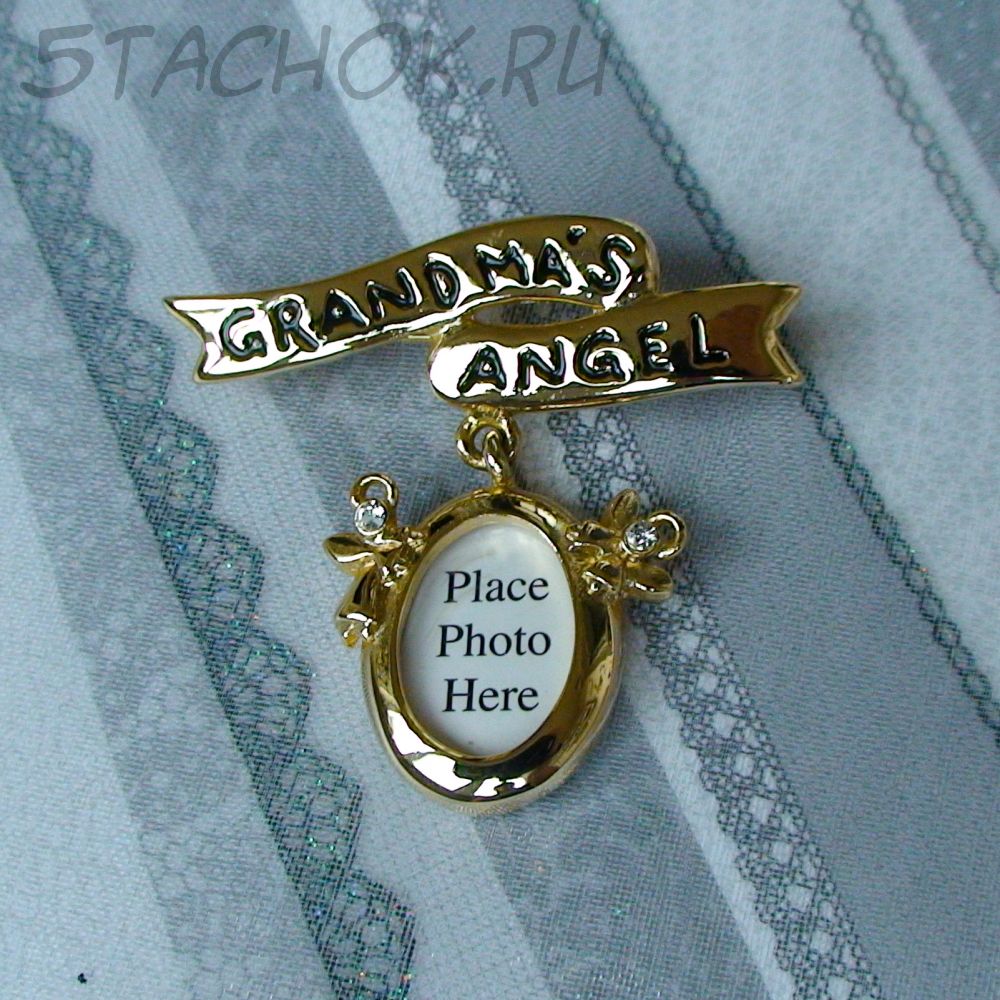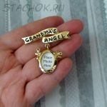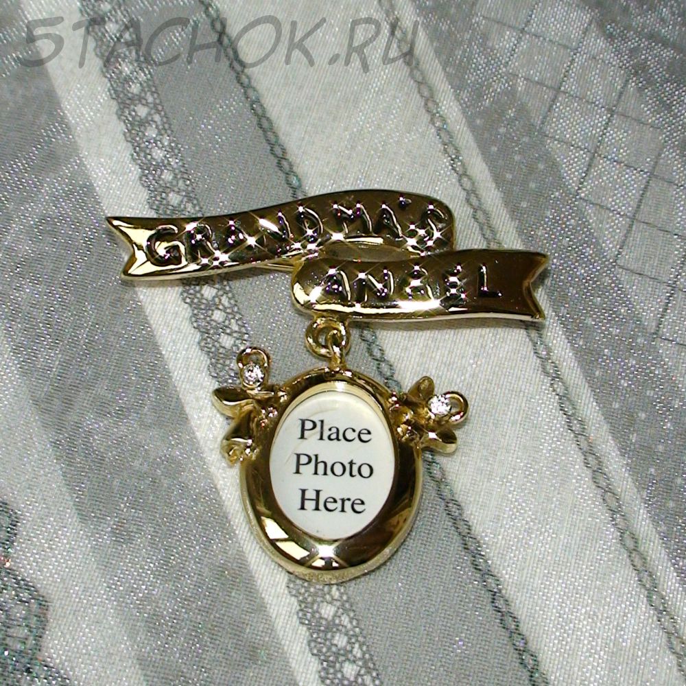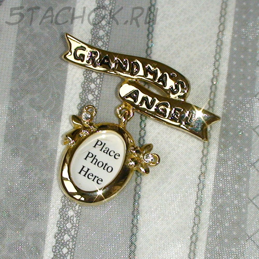 Брошь-рамка "Бабушкин ангелочек" под золото, сваровски
