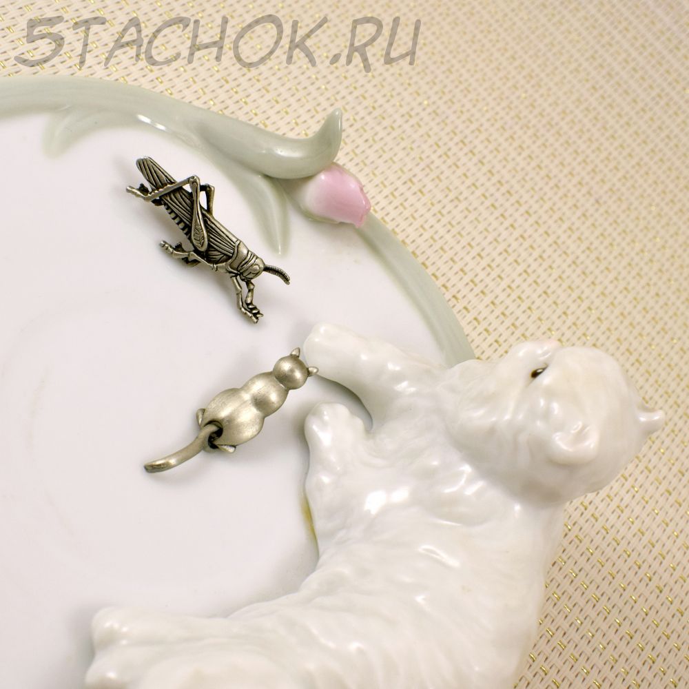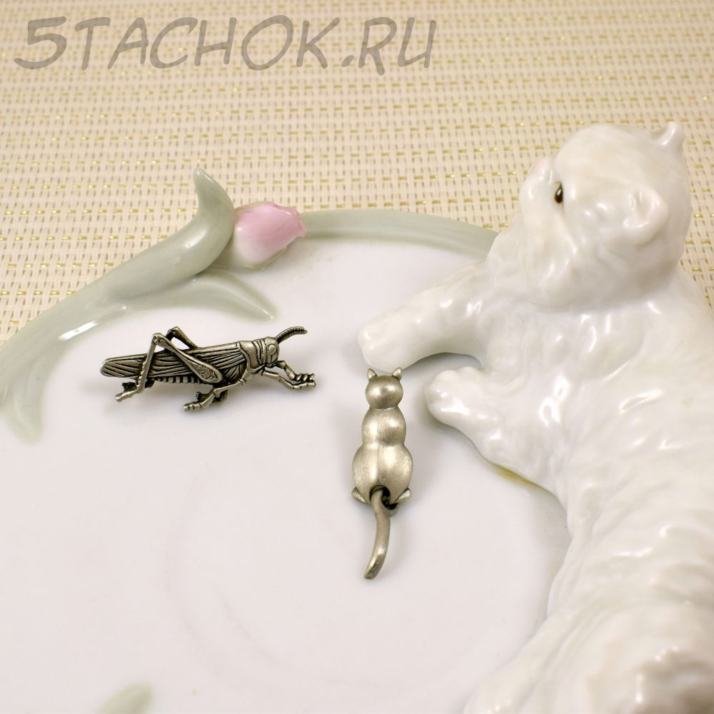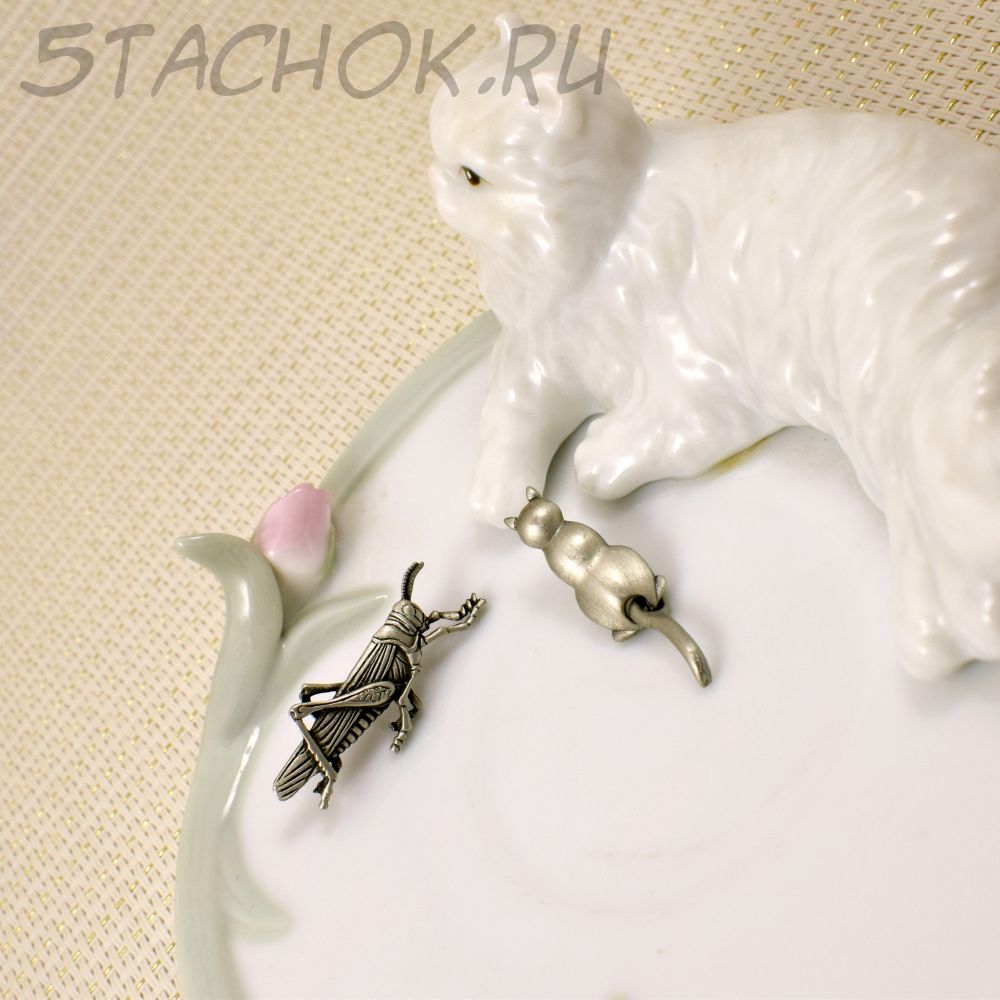 Дуэт брошей "Кошечка и кузнечик" (JJ США)