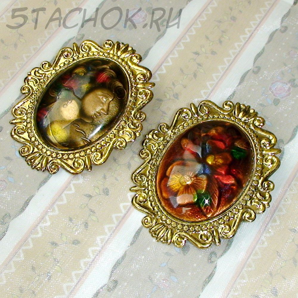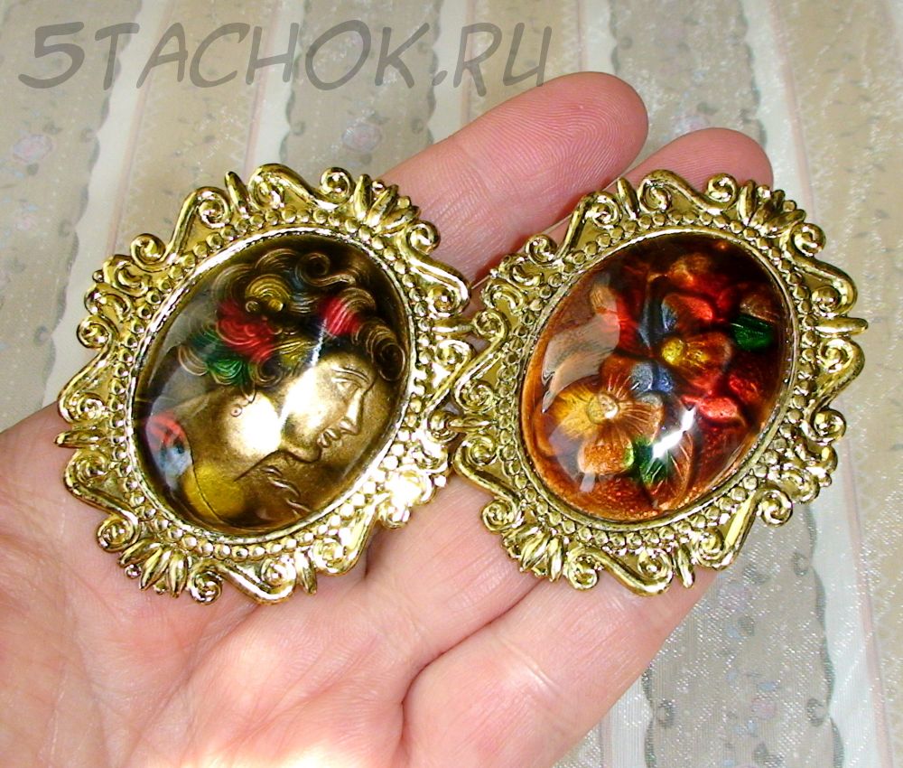 На эмали броши с леди просматриваются засвеченные области (не могу сказать, является ли это дефектом или предусмотрено технологией изготовления). Общее впечатление от брошки не портится, она смотрится очень стильно и благородно. Брошь с букетом в безупречном состоянии.