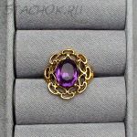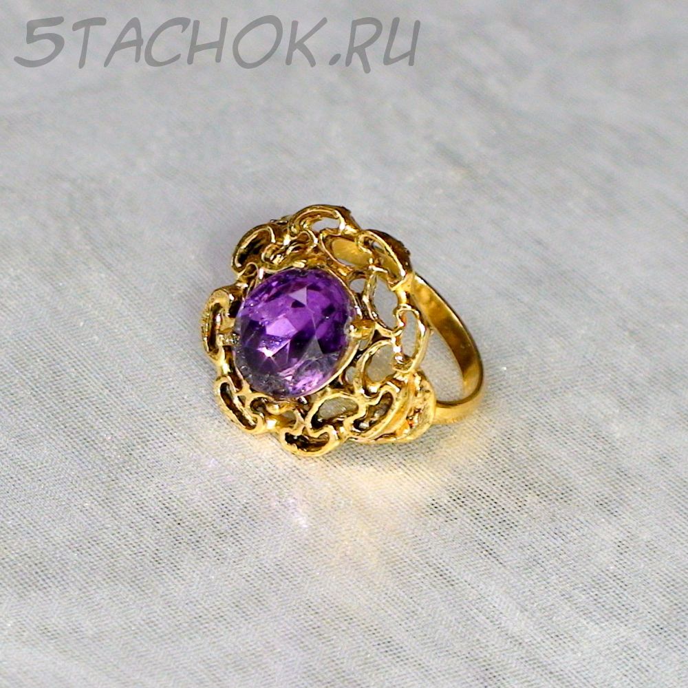 Кольцо сиреневое под золото
