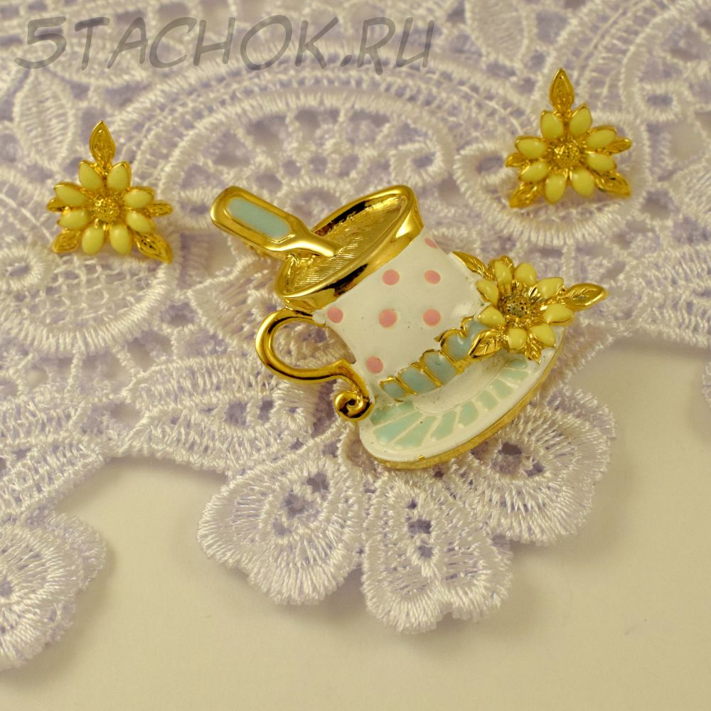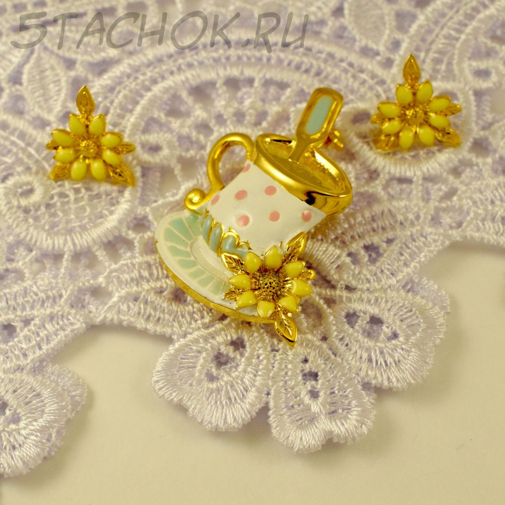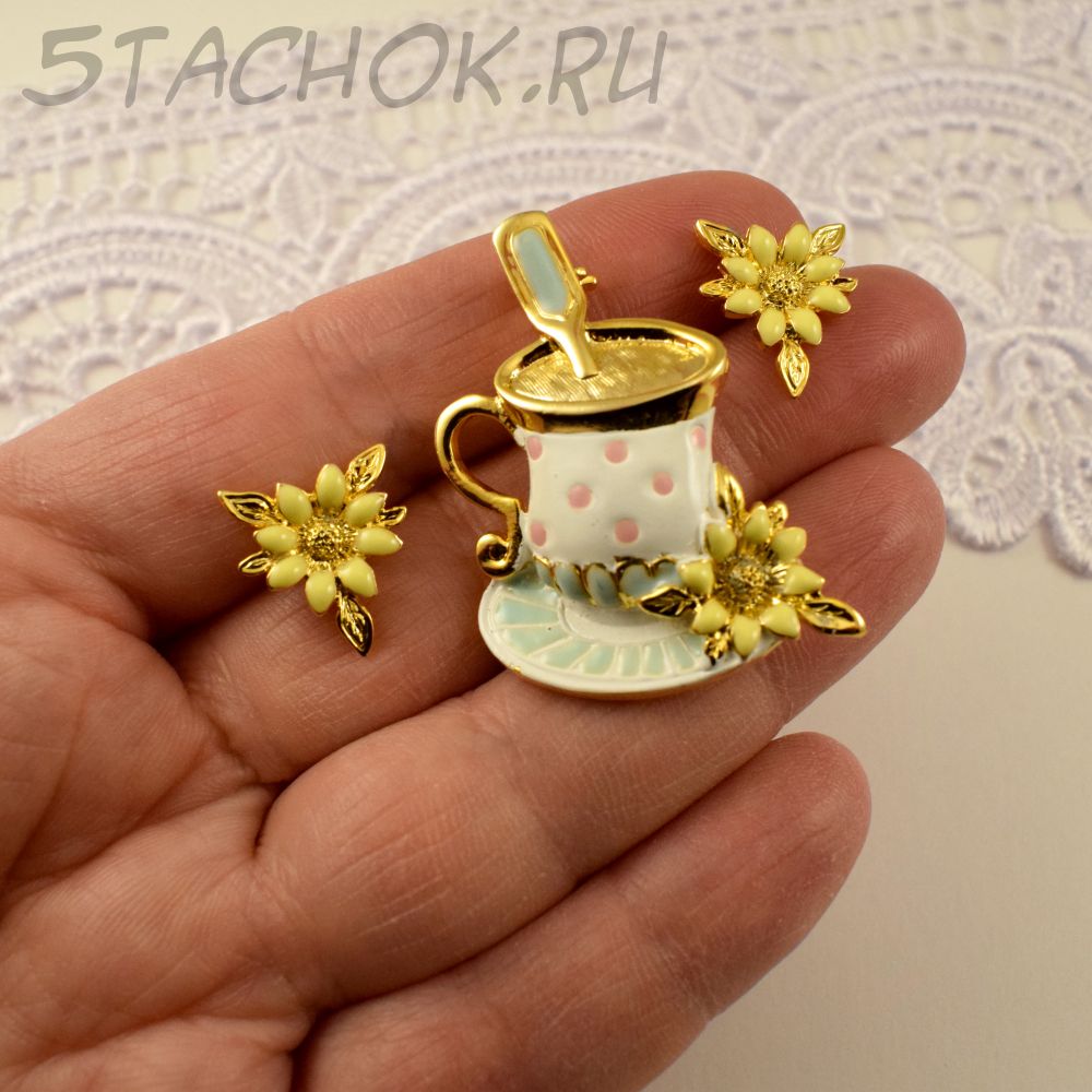 Комплект брошь и серьги "Чаепитие" (Danecraft США)