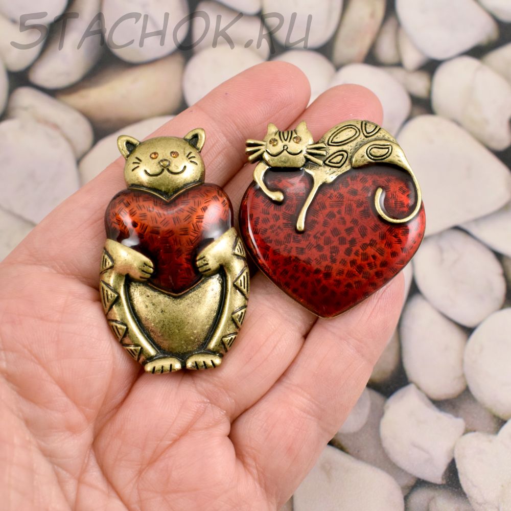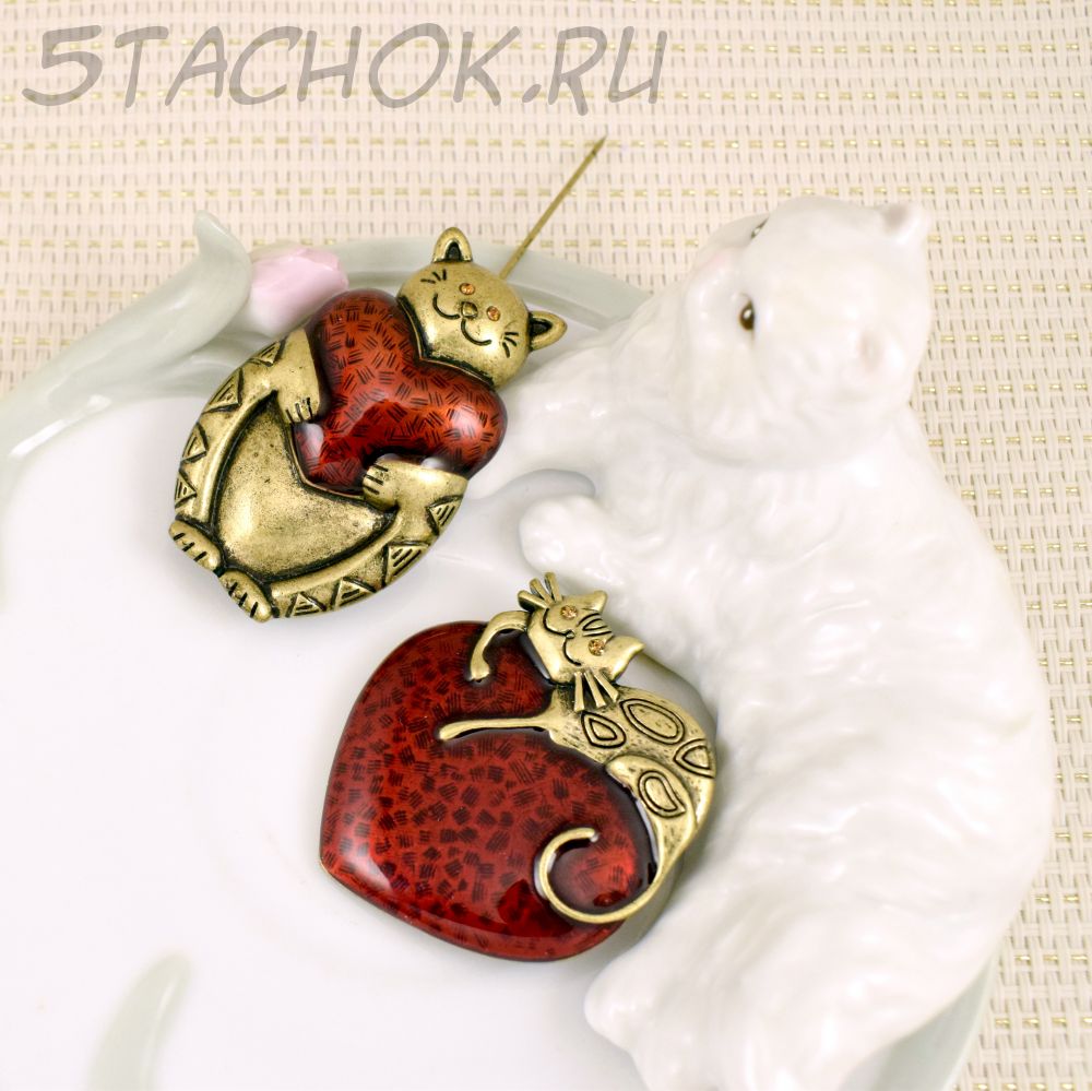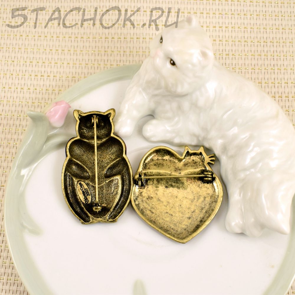 Парные броши "Котик и кошечка с сердцем" (Coldwater Creek, США)