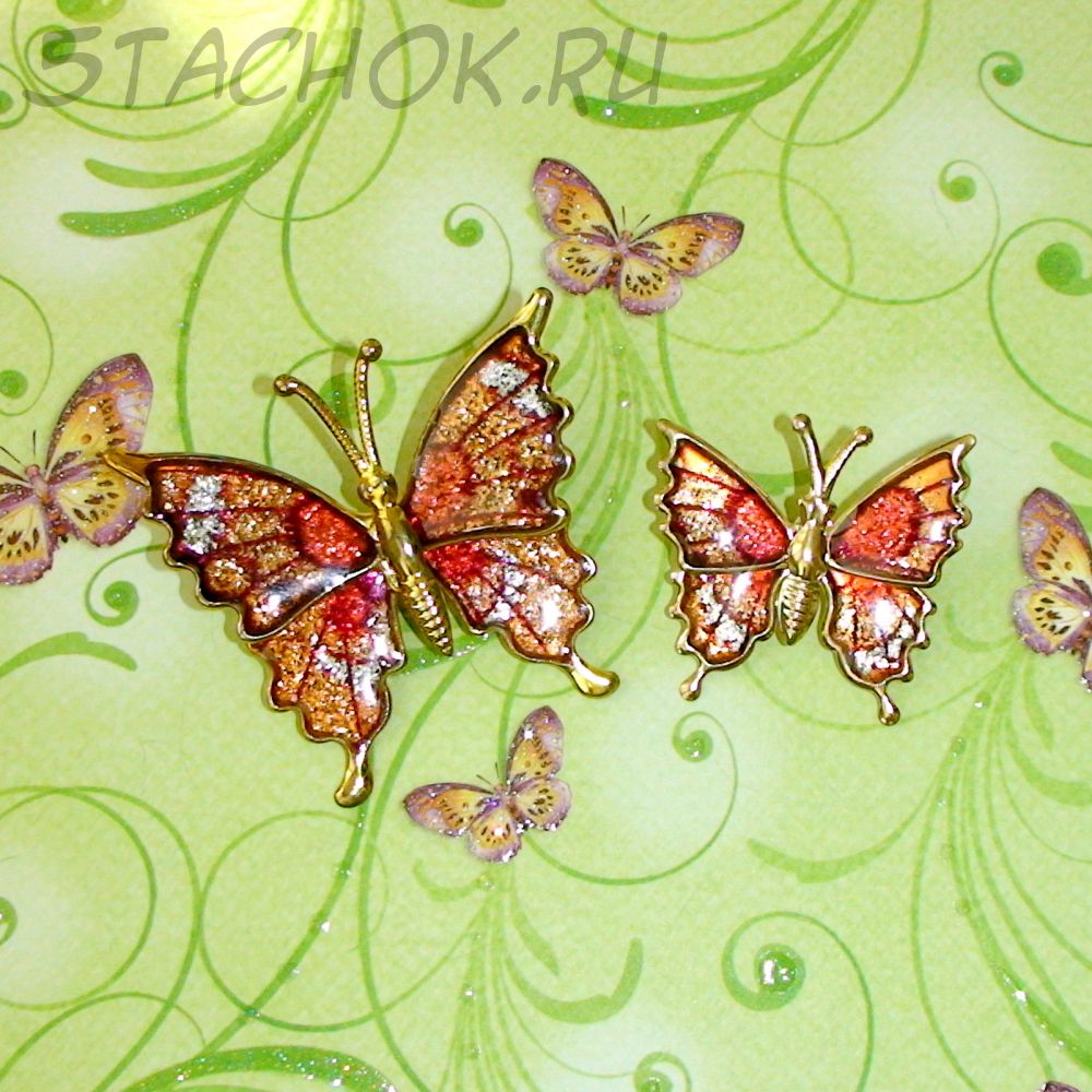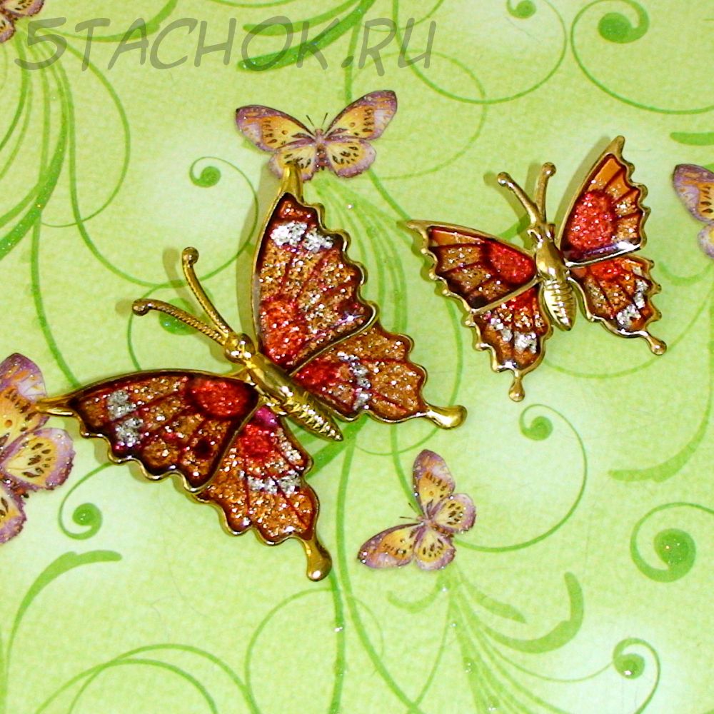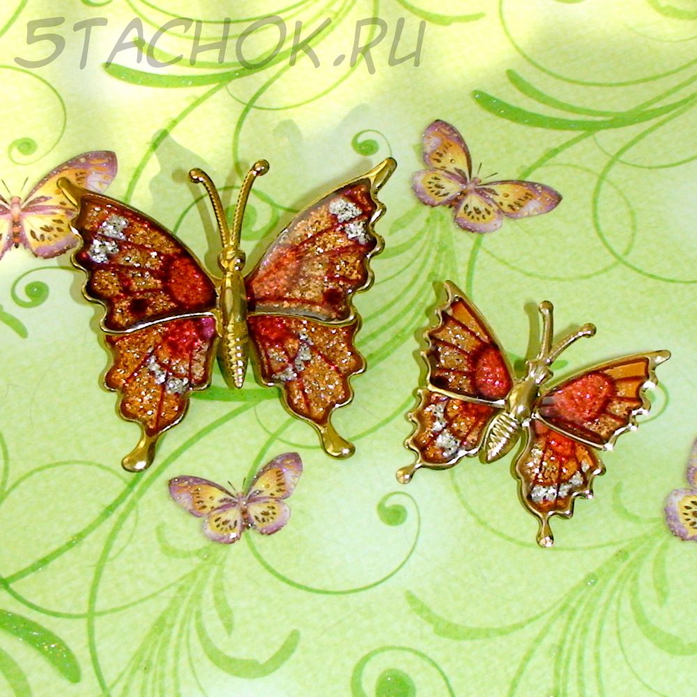 Парные броши "Оранжевые бабочки" под золото, эмаль
