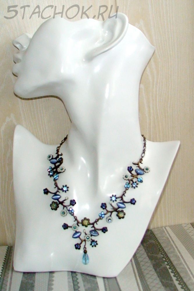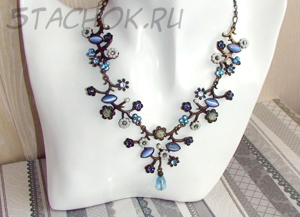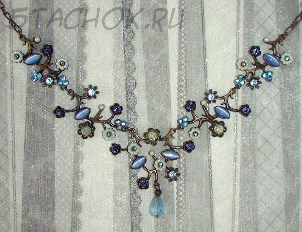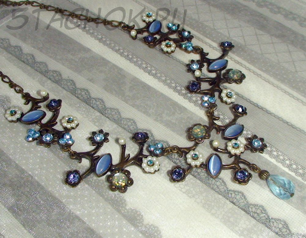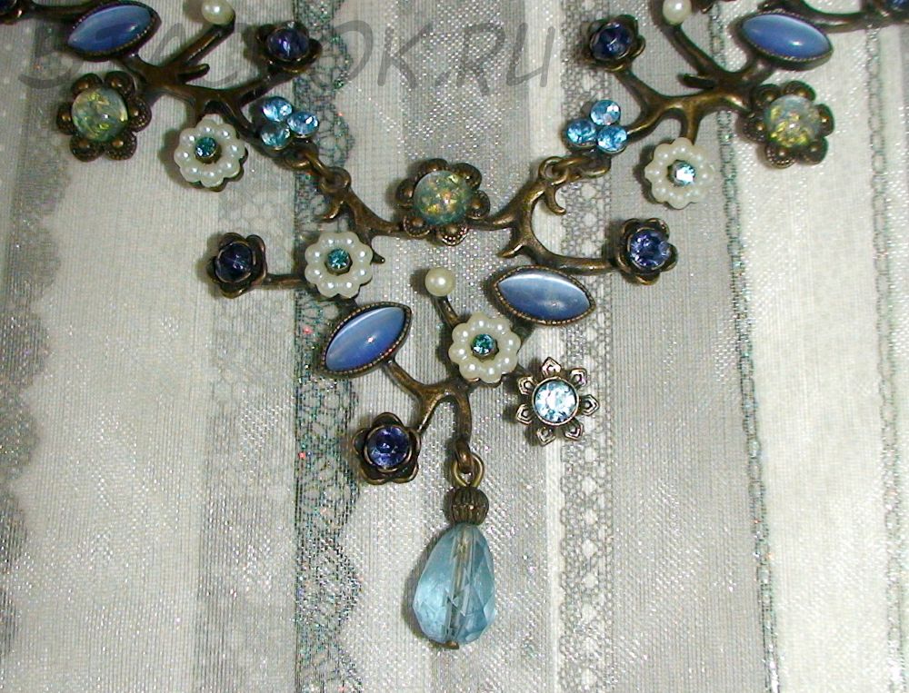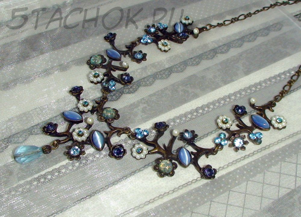 Роскошное старое колье под бронзу/исск.жемчуг/стразы