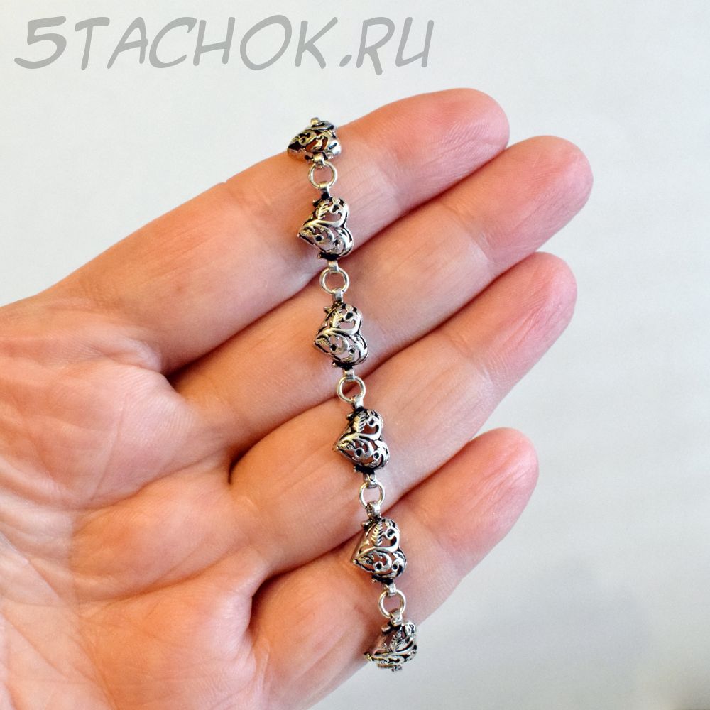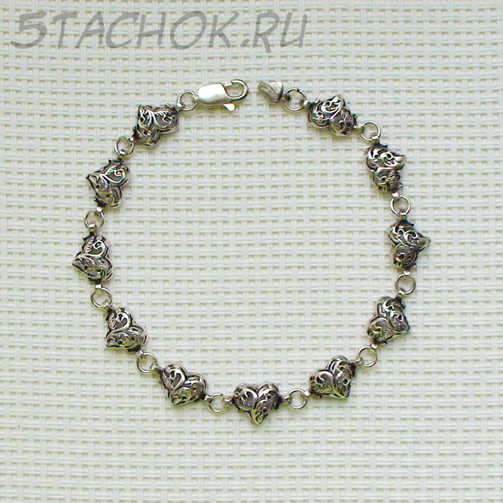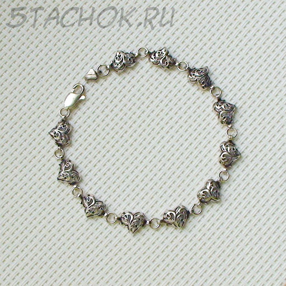 Серебряный браслет "Сердечки" черненое серебро 925 (США)