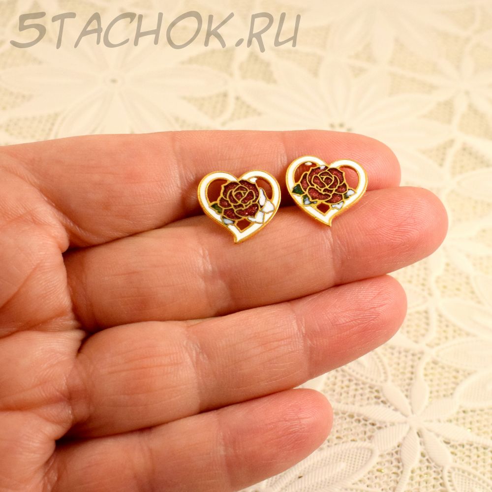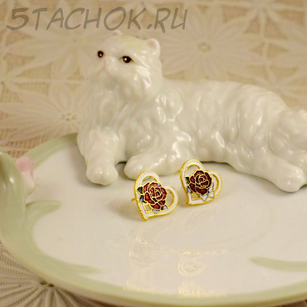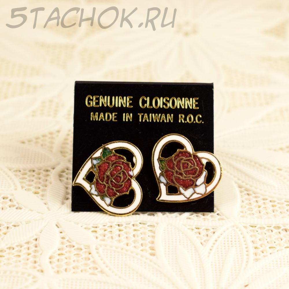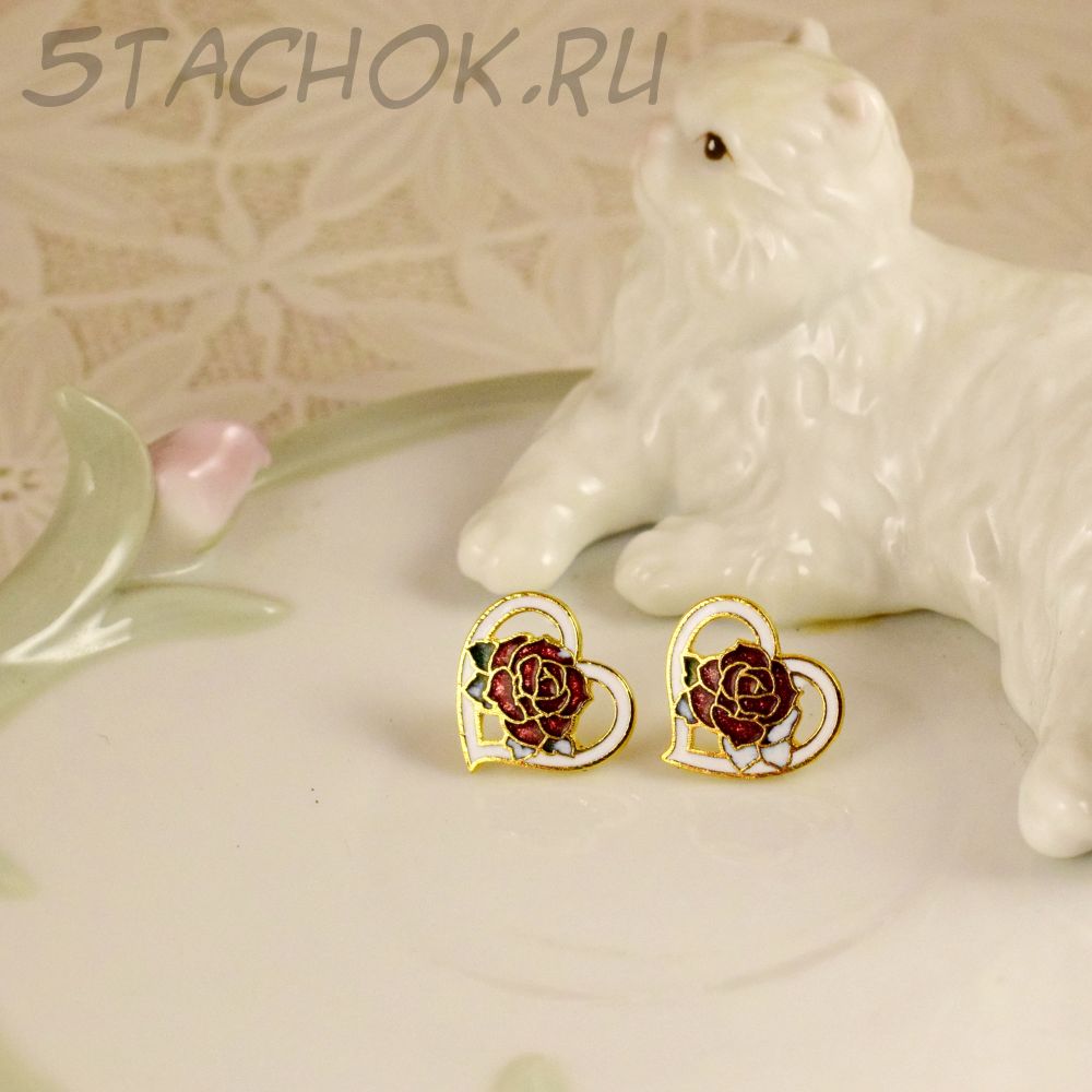 Серьги "Розочки-сердечки" клуазоне (Тайвань/Китай)