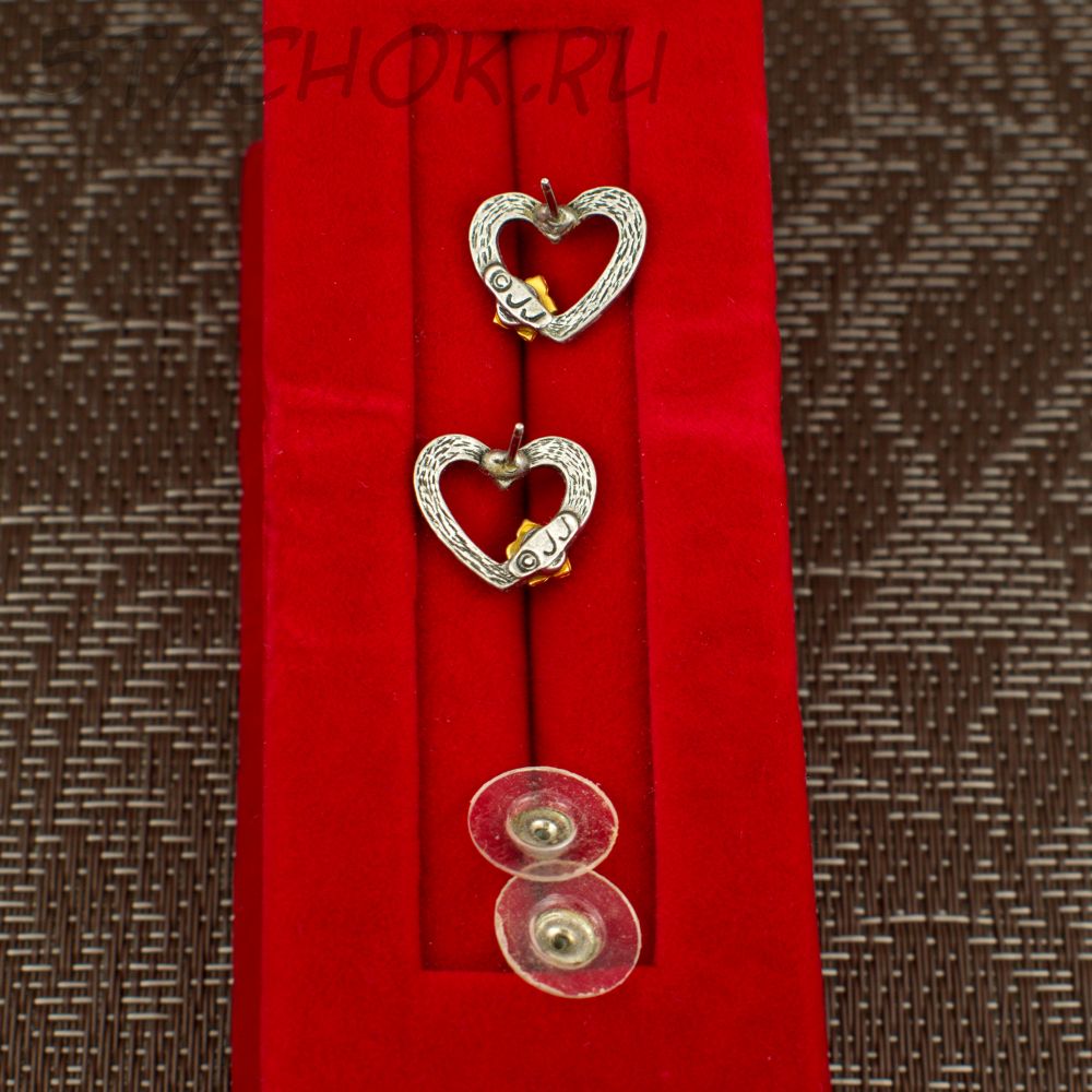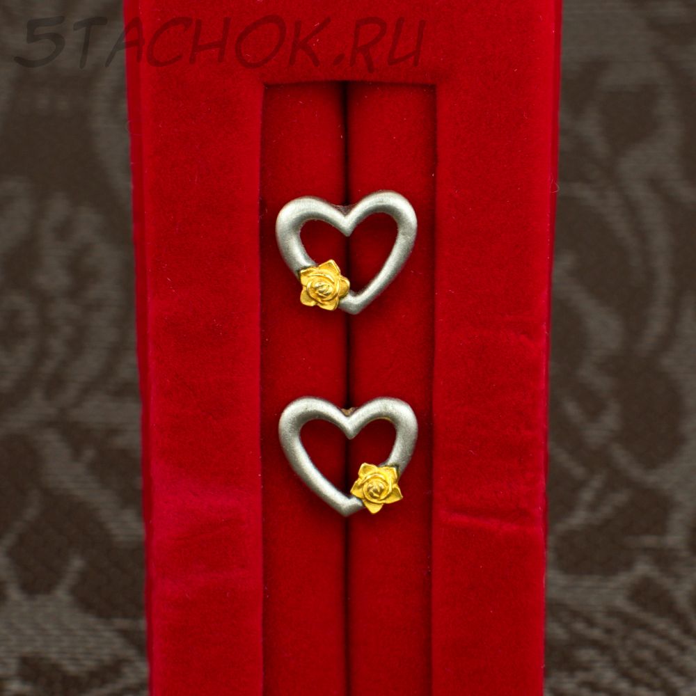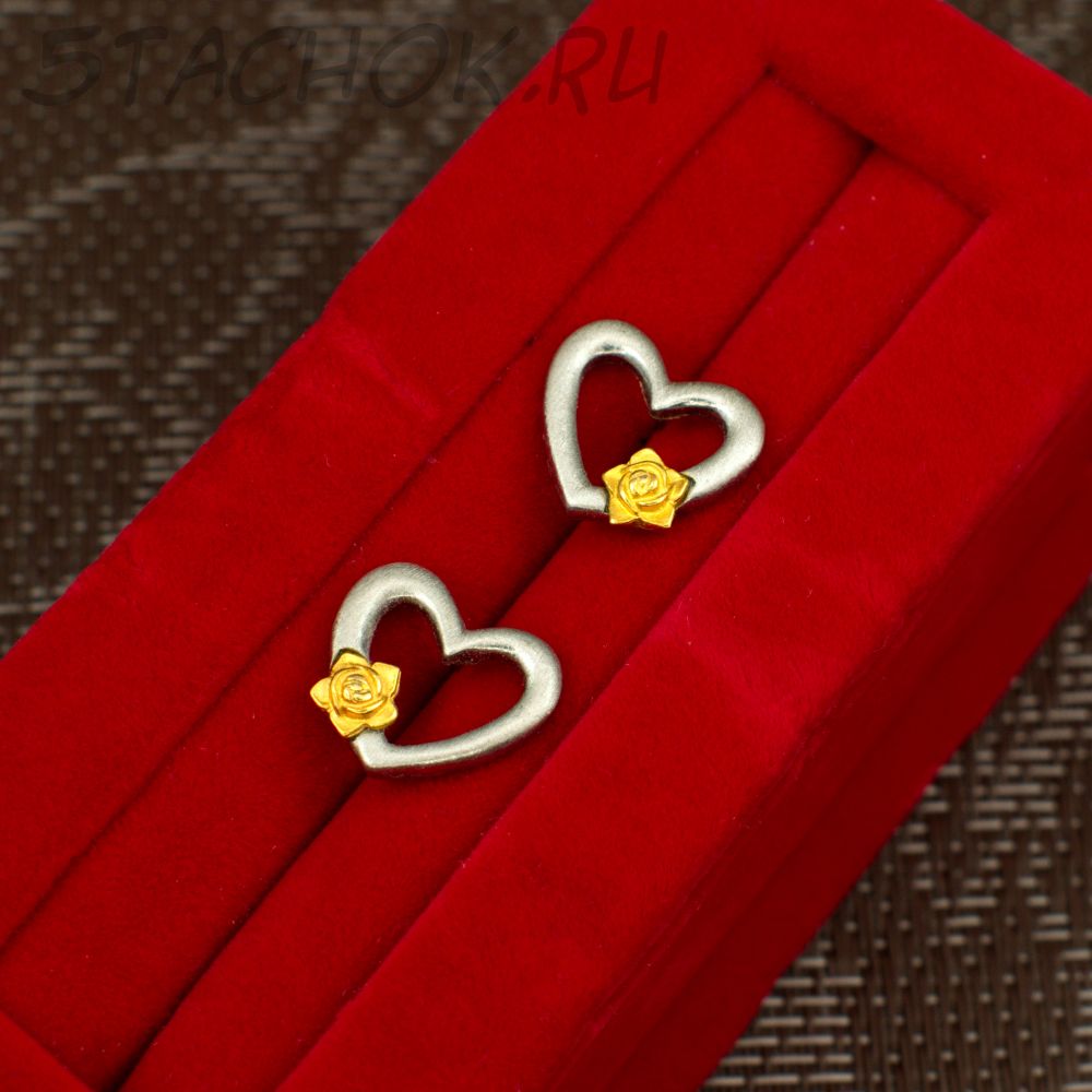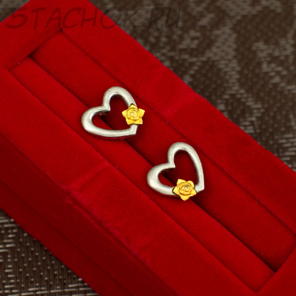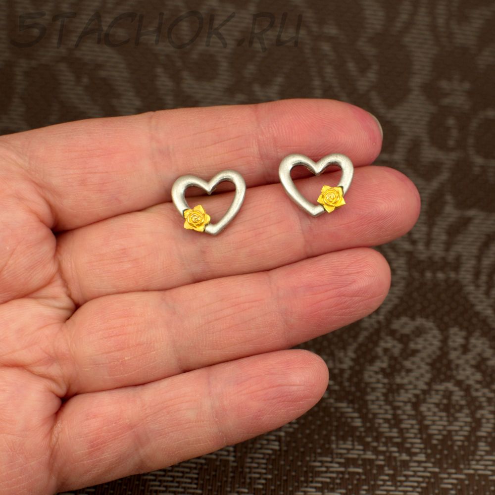 Серьги-гвоздики "Сердечко с розочкой" (JJ США)