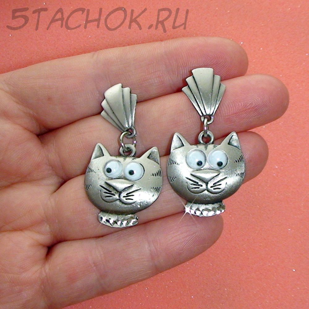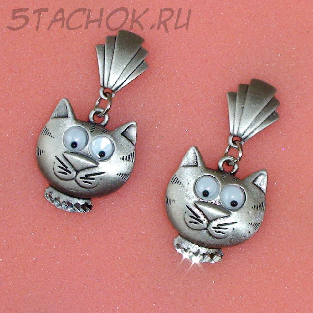Серьги отлично смотрятся в комплекте с брошью "Забавный котик".
