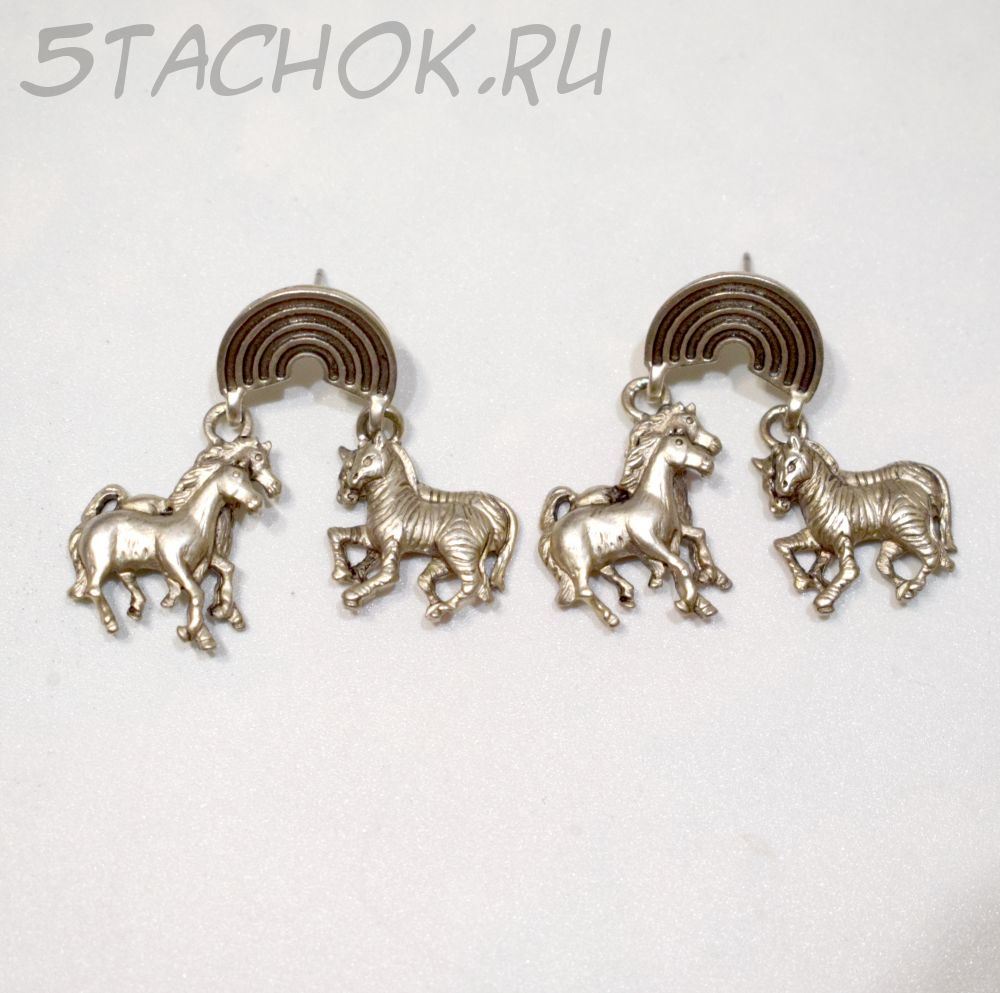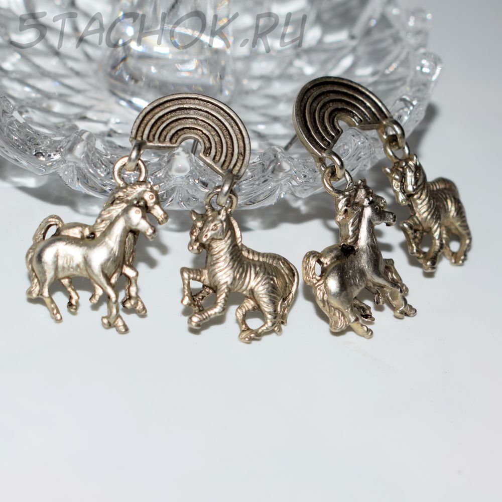 Пара лошадок и зебр имеют подвижность относительно радуги.