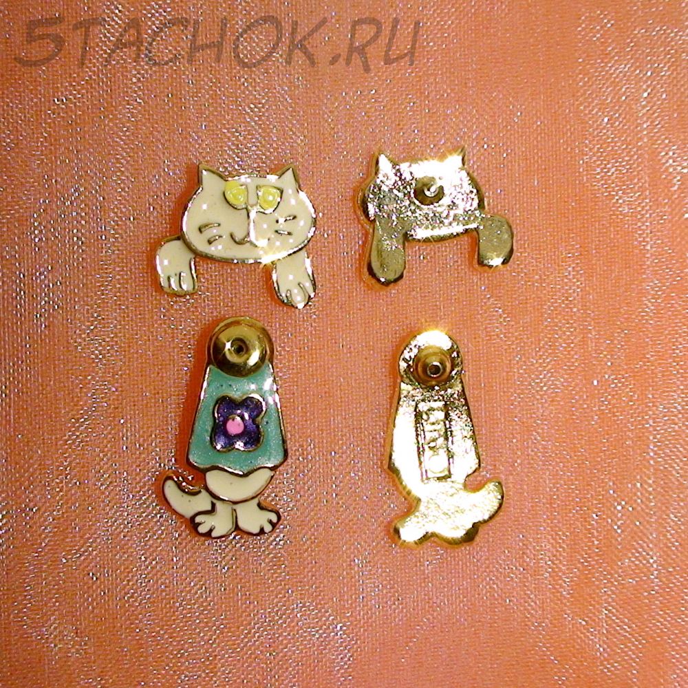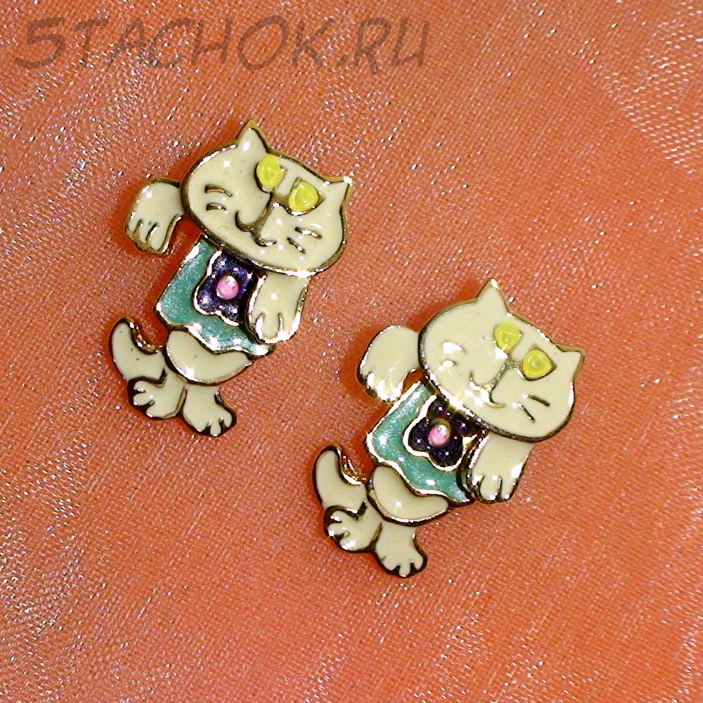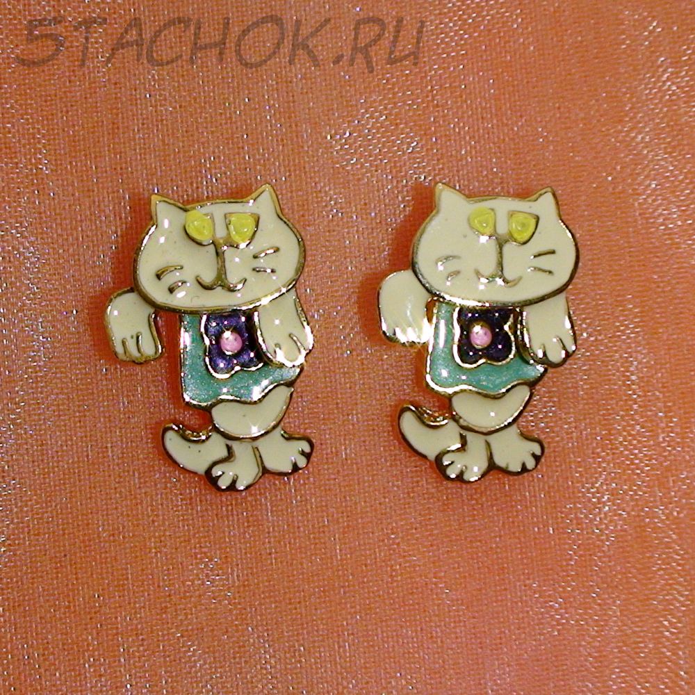 Серьги из половинок "Киски-милашки" под золото/эмаль