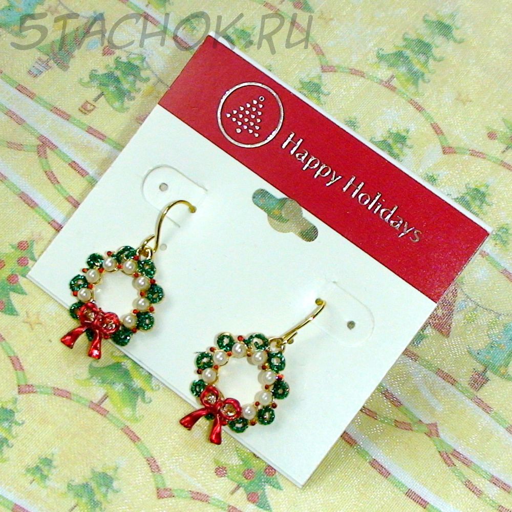 Серьги "Новогодняя гирлянда" цвет золота/эмаль/стразы (США)