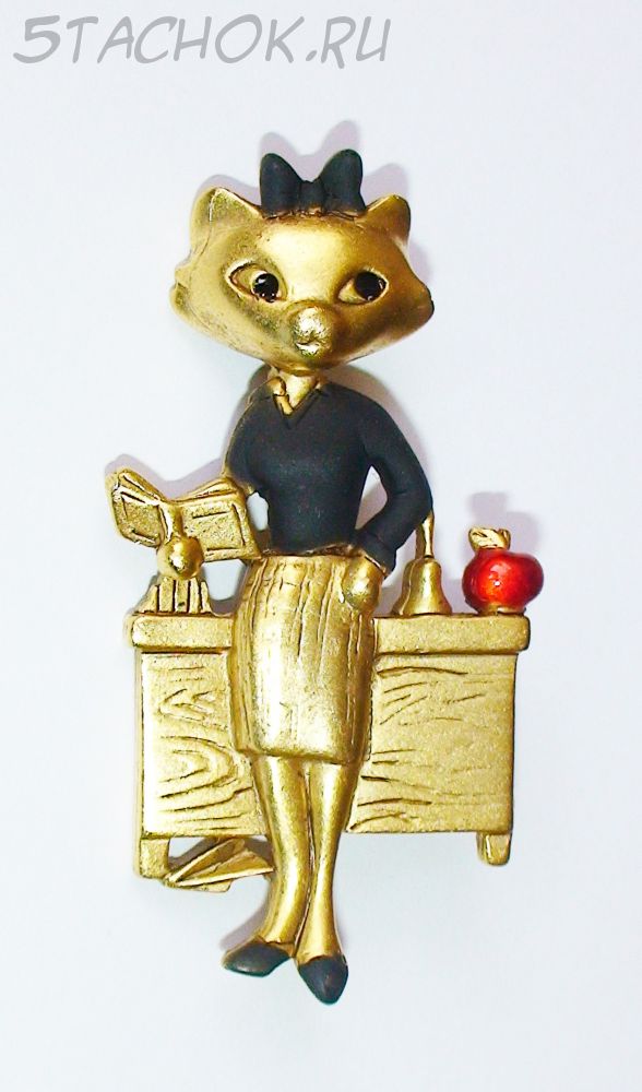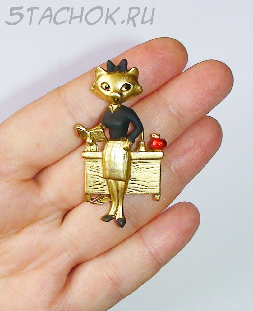 Брошь "Кошечка-учительница" под матовое золото, эмаль