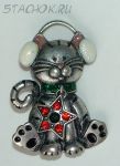 Брошь "Котик в наушниках" под олово, ювелирная эмаль, камушки Сваровски
