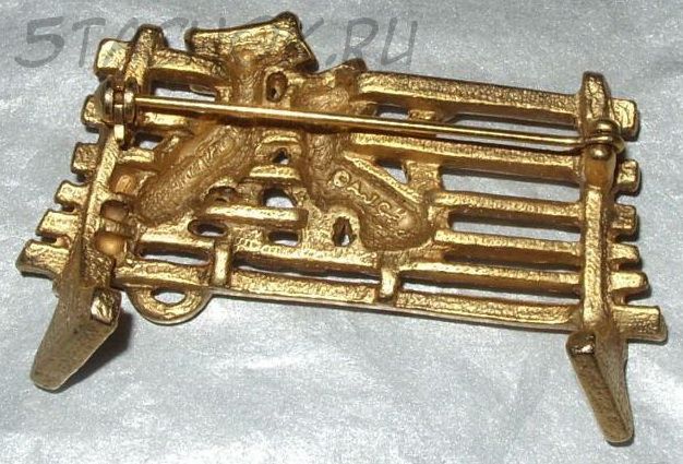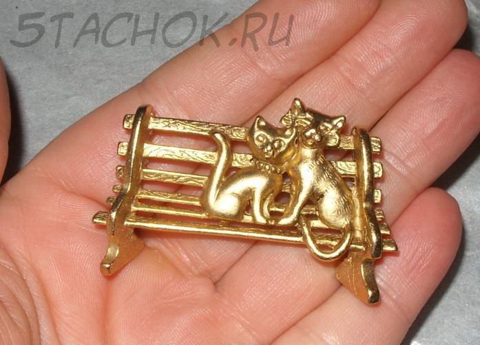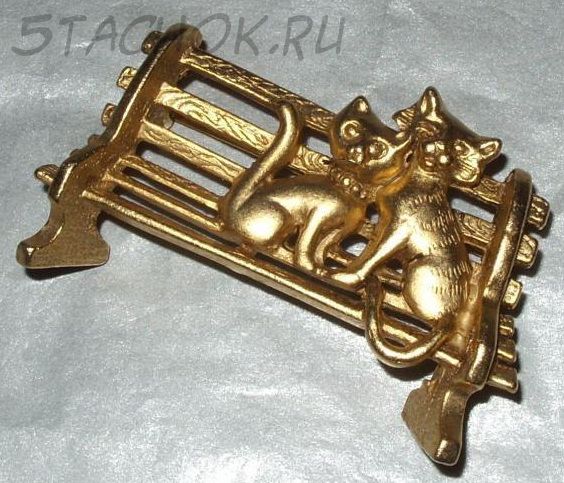 Брошь "Кошечка и котенок на скамейке" цвет золота (AJC США)