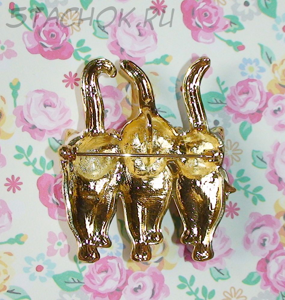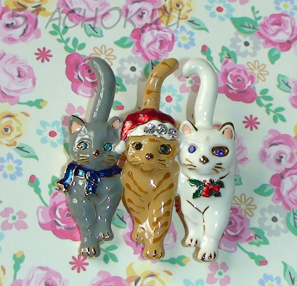 Брошь-Подвеска "Рождественские коты" под золото, эмаль, камушки (США)
