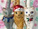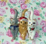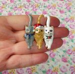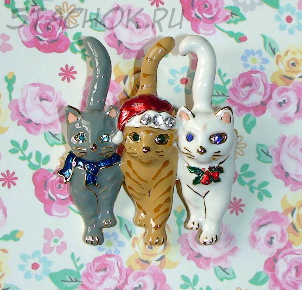 Три кота белого, рыжего и серого насыщенных цветов с синими, голубыми и зелеными глазками! Котики нарядились и пошли справлять Рождество к своим подружкам-кошечкам! Брошь имеет петлю, что позволяет носить ее и как подвеску-кулон!