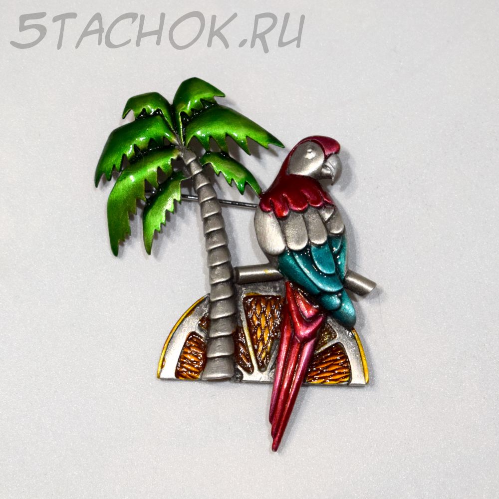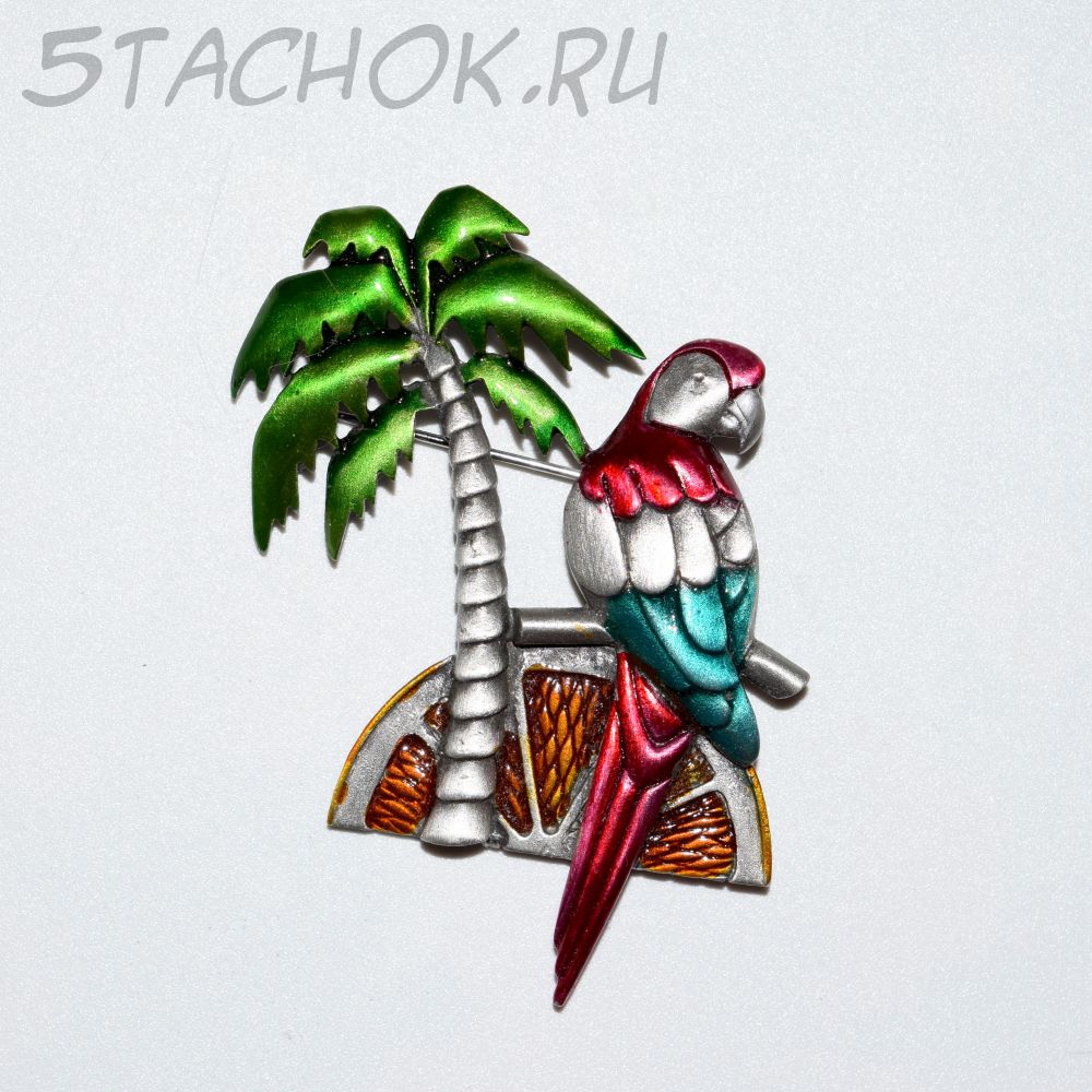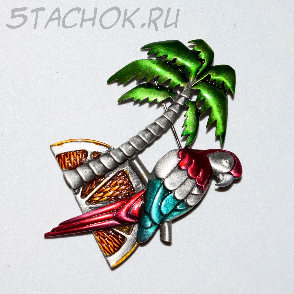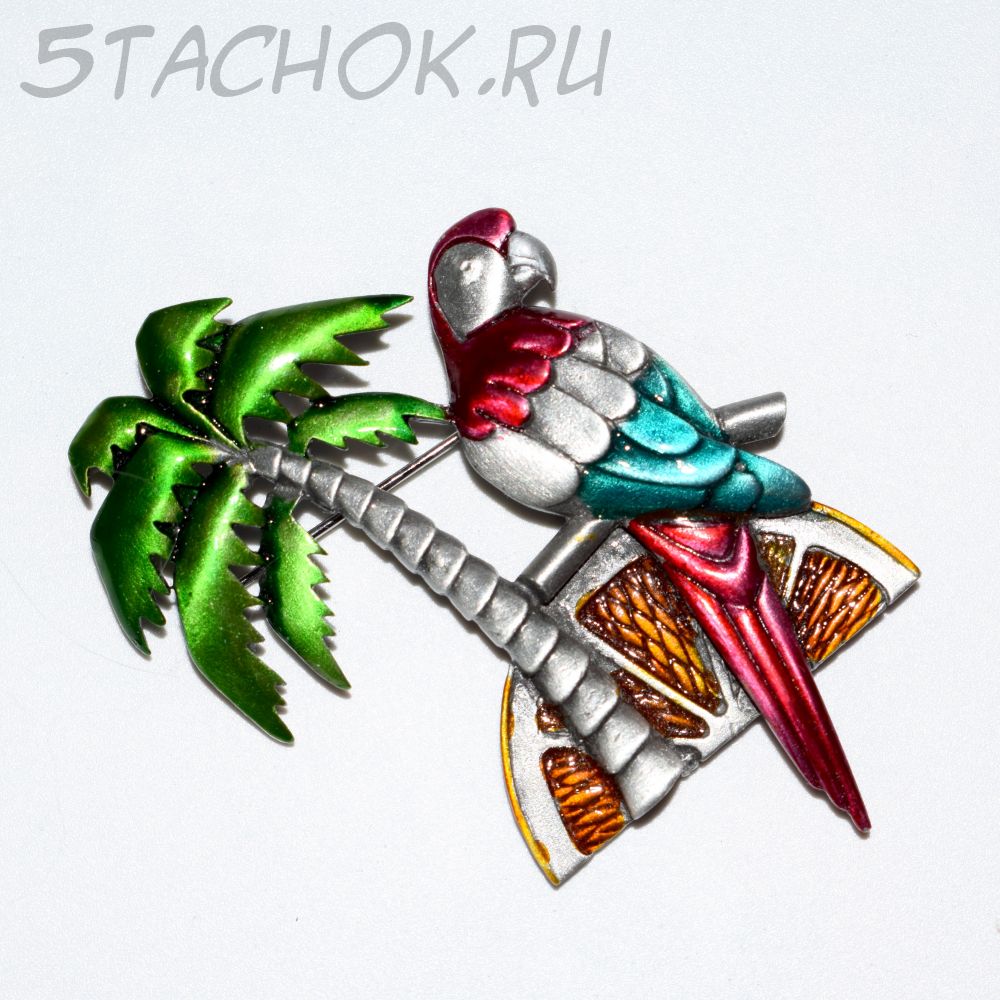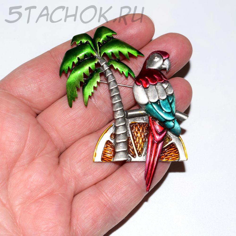 Брошь "Попугай, пальма, апельсин" (JJ США)