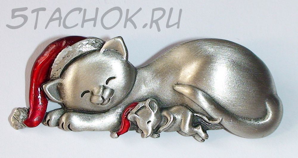 Брошь "Рождественские Котенок и Мышонок" под олово/эмаль