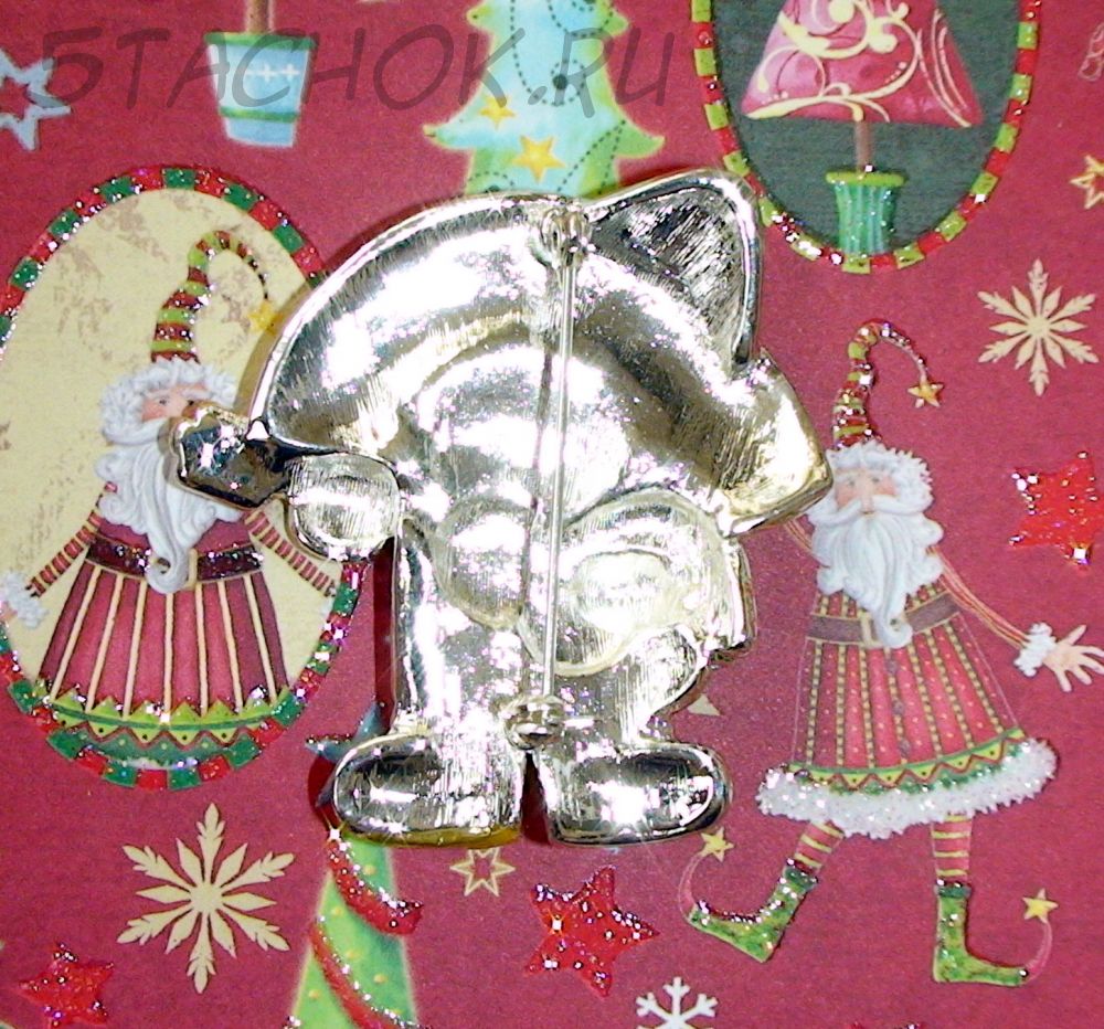Брошь выполнена в материале под серебро с перламутровой эмалью с блестками. У снеговичка как положено торчит носик-морковка!