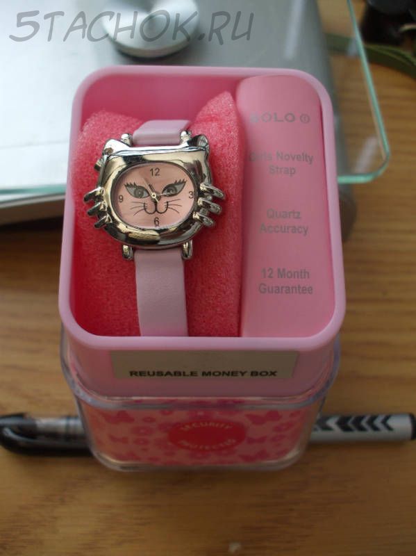 Часы для девушки "Кошечка гламурная" с коробочкой-копилкой (на ремешке)