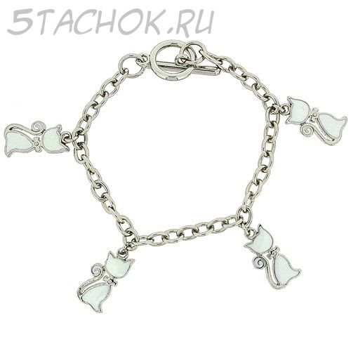 Часы женские кулон с цепочкой и браслет с котятами белый