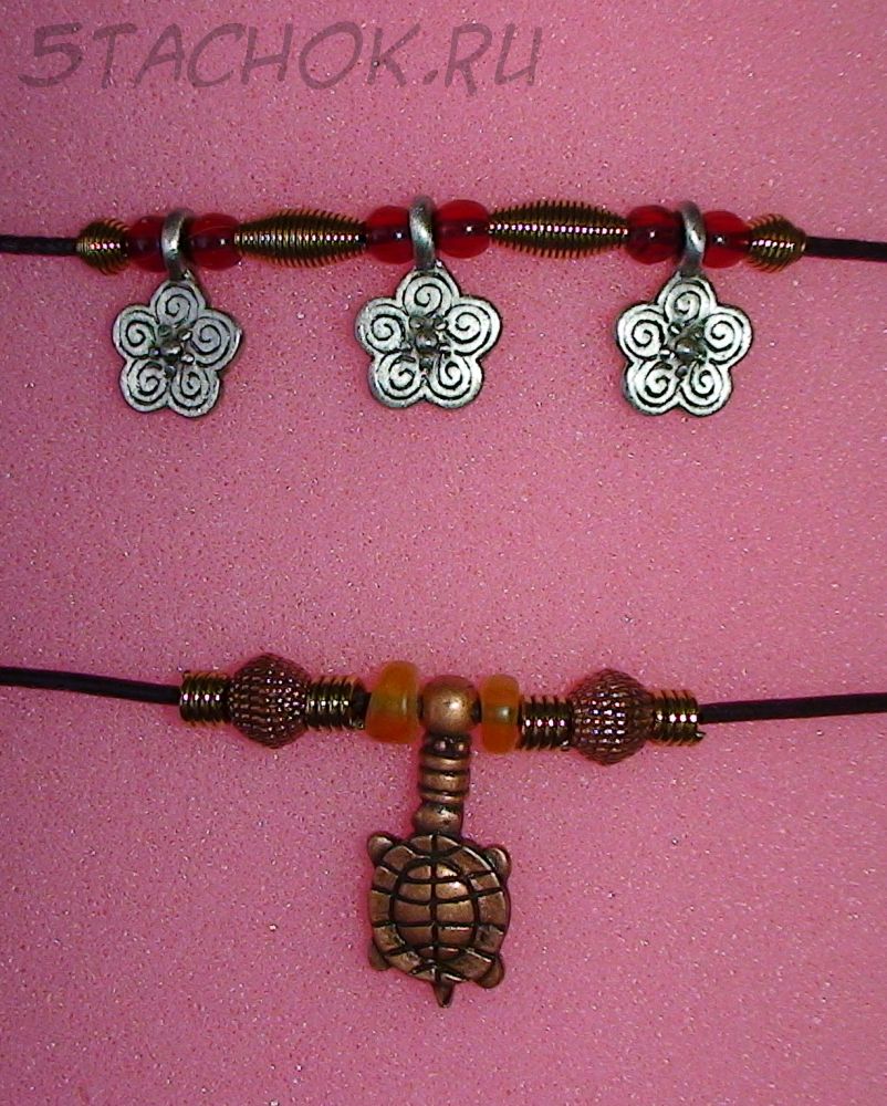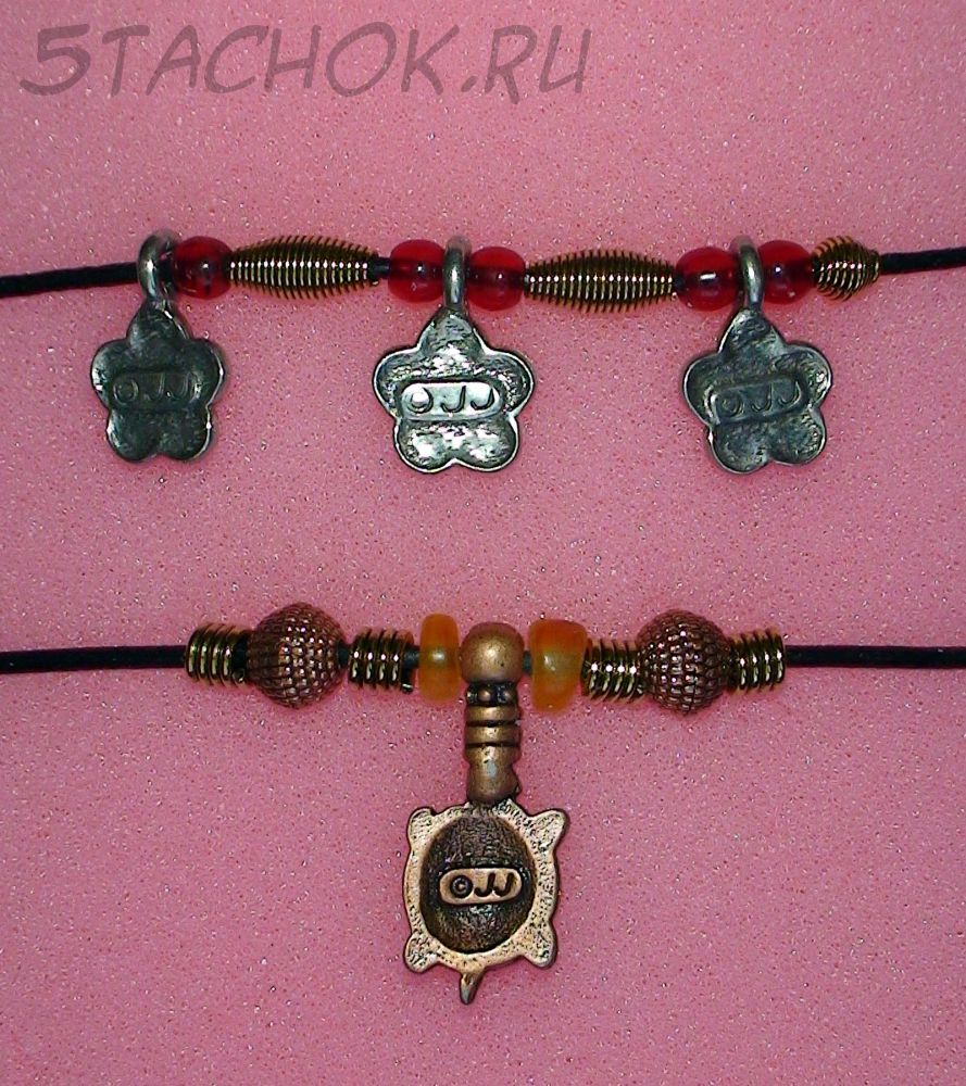 Два колье "Черепашка" и "Цветочки" олово/бронза/камушки (JJ США)