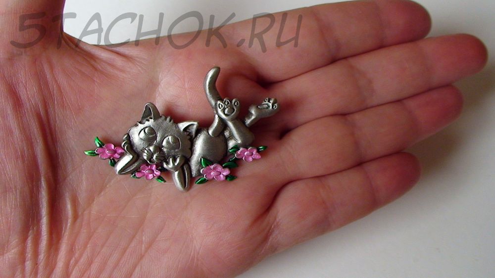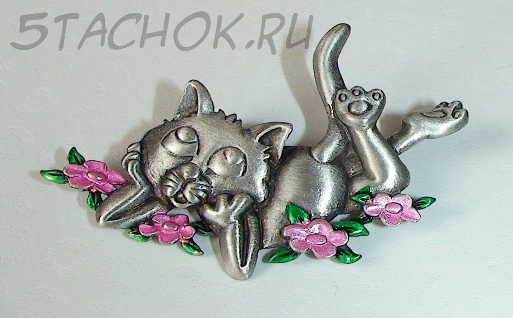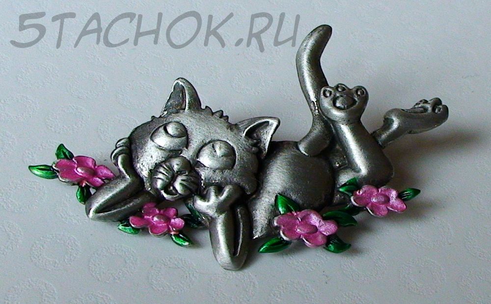 - Брошь "Мечтающий котик в цветах" под олово/эмаль