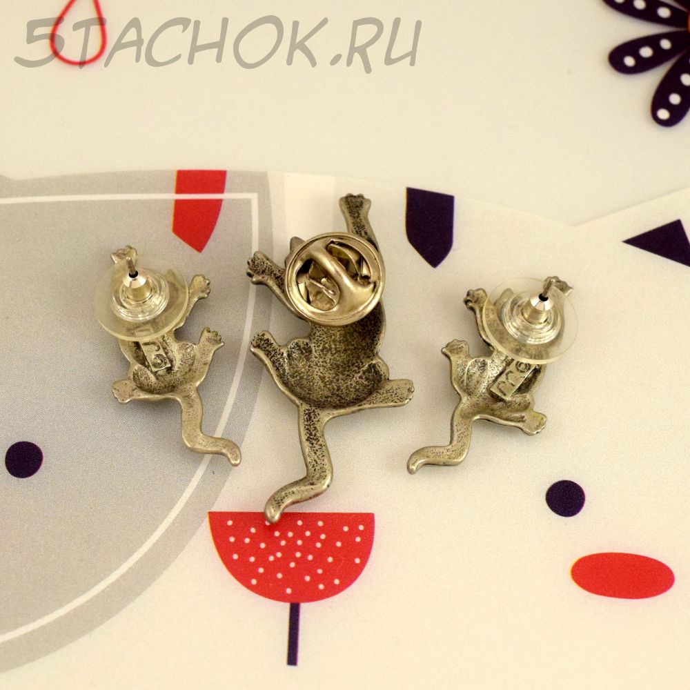 Брошь и Серьги-гвоздики "Крадущаяся кошка" (JJ США)