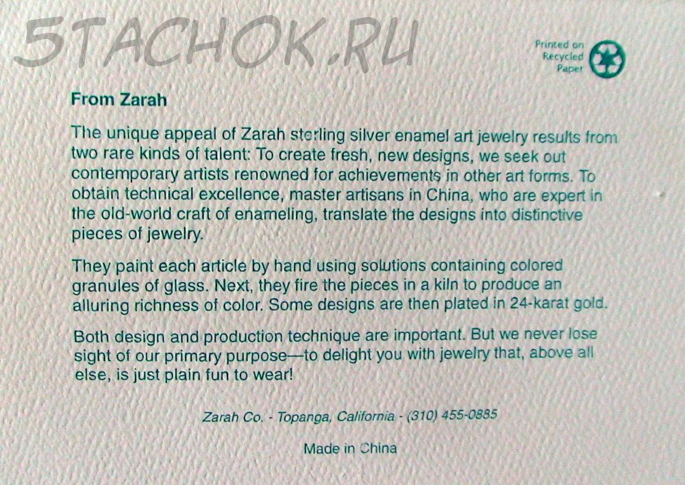 - Ювелирные изделия от Zarah (США)