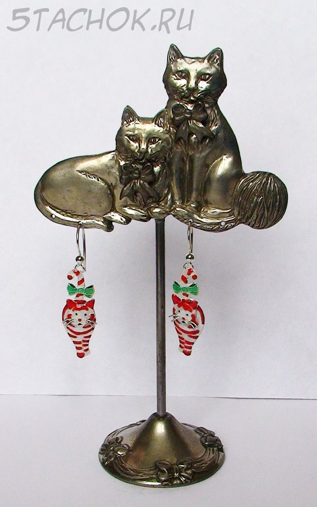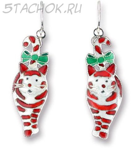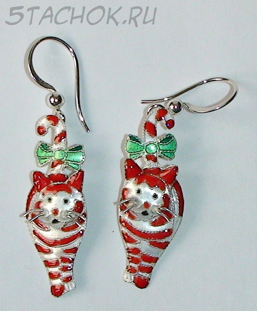 Серьги "Красная кошка" серебро 925, ювелирная эмаль