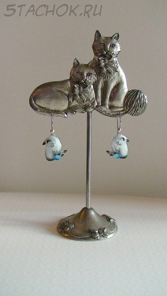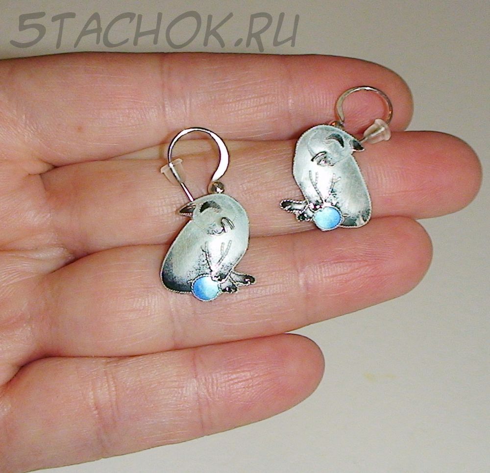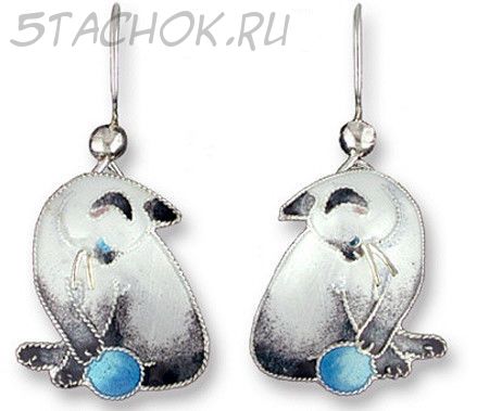Серьги "Тайский котенок" серебро 925, ювелирная эмаль