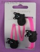 Заколки и и резинка для волос для девочки "Котик" черный