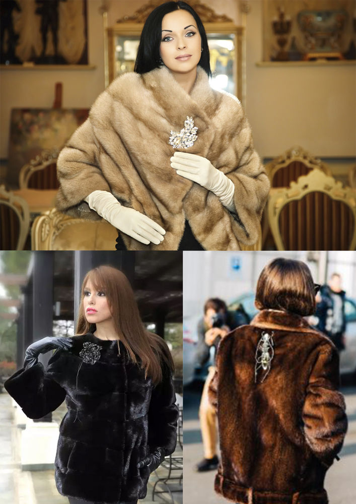 Украшение брошью верхней одежды необычайно интересно смотрится на пальто, шубе, меховом жилете. Важно соблюдать гармоничные пропорции между одеждой и выбранной брошью.