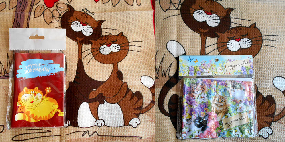 Замечательная обложка на паспорт с рыжим толстяком и романтические кошечки на обложке для студенческого билета.
